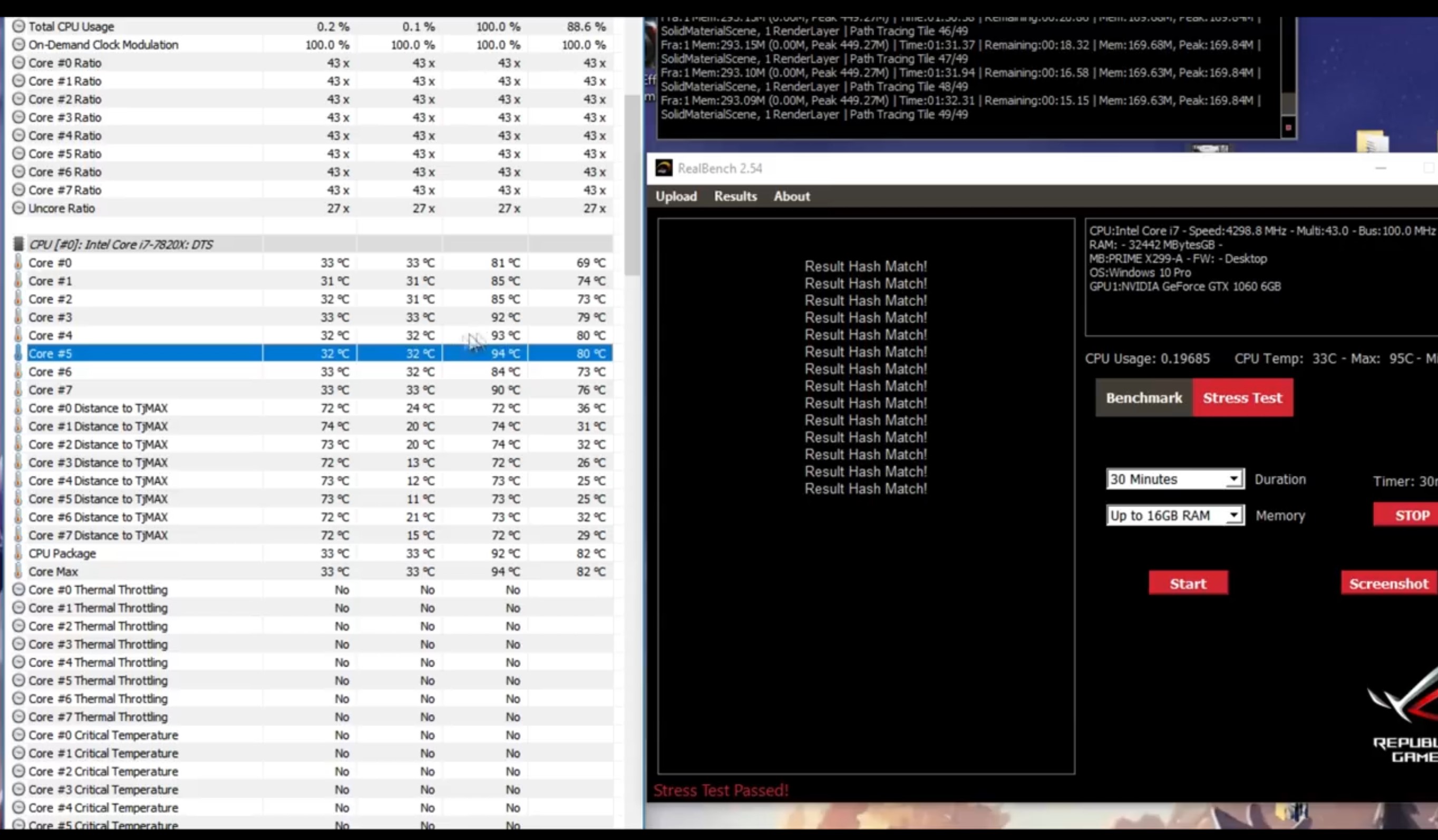 Если с разгоном, то без скальпа там делать нечего. Вот температура процессора 7820, в тесте RealBench, при разгоне 4300MHz и напруге 1.2v c охлаждением Be Quiet Silent Loop 240mm и термопастой Arctic Cooling MX-4.