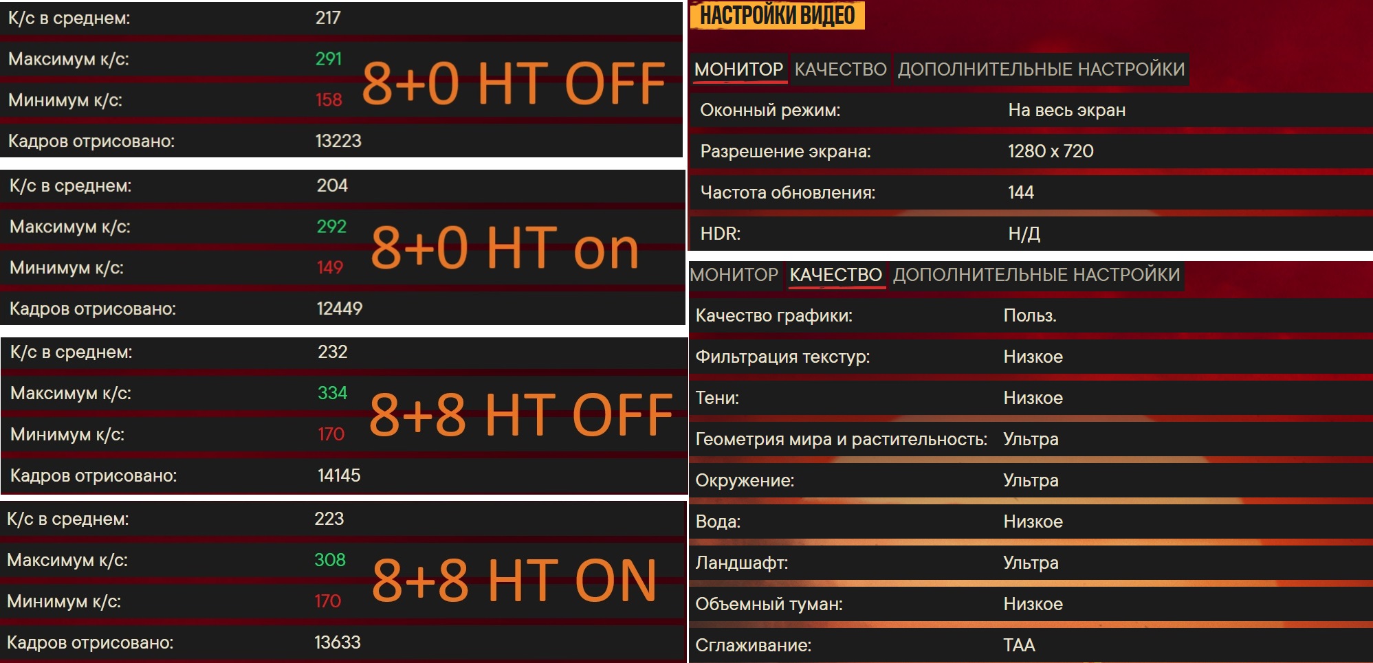 Пенсионер600 Я тестировал "для себя" в киберпанке, батлфилдах, фаркрае, вд2.. везде одинаково. Не для себя один из результатов даже оформил