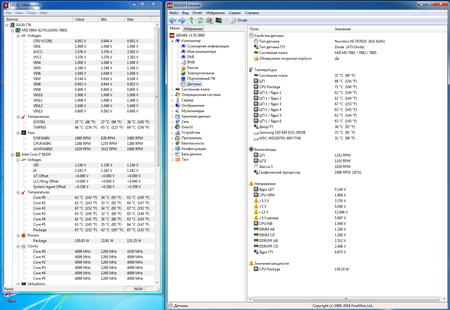 вчера от нечем заняться решил проверить свой 6800к, и в режиме "помолясь чтоб не спалясь" выставил 36(было 31 по умолчанию), и оставил напругу в авто. после загрузки пришёл в ужас - материнка выставила 1,396v(!). после нескольких часов подбора, остановился на стабильных 35/1,200v, и 4гц/1,265v(пришлось поднять напряжение и здесь). камень мне попался отстойный конечно, но в целом доволен; максимальная температура ядра в LinX 0.6.8 - 87с, результаты памяти неплохо выросли, особенно в записи -
