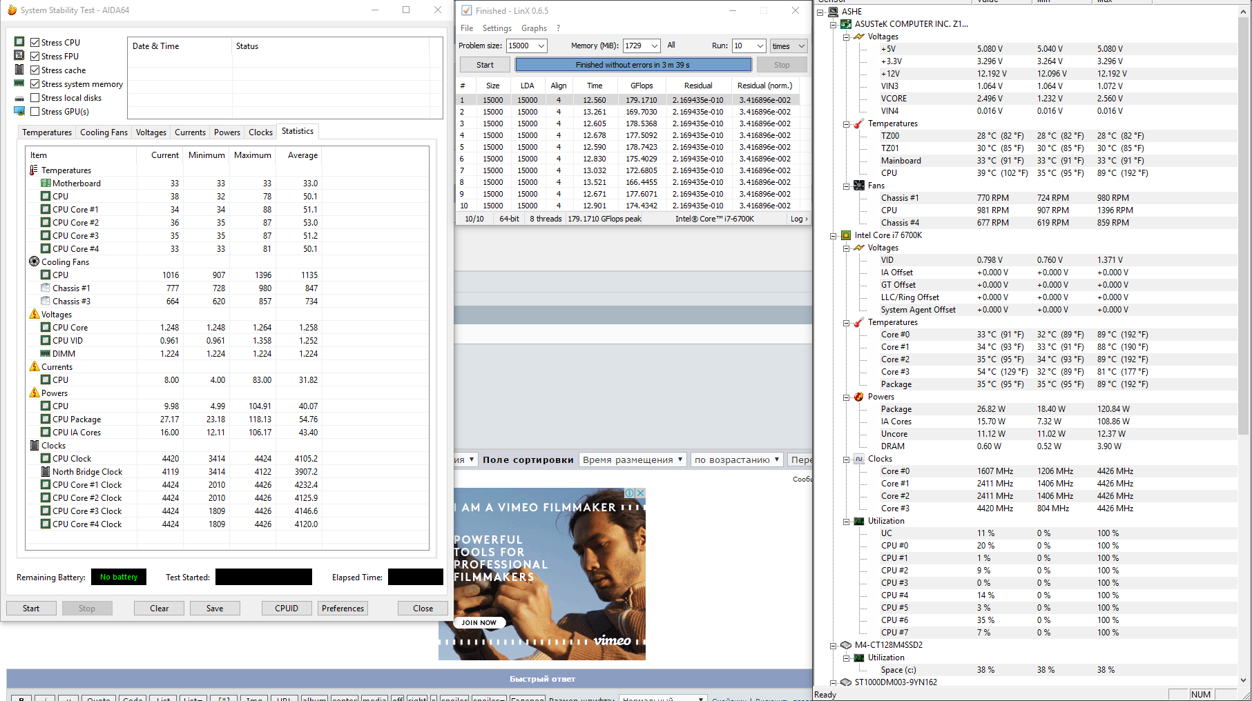 Ребята, такой вопрос по разгону (давно я этим не занимался) В биосе ставлю напряжение на проц в мануал и прописываю руками 1,23. LLC lvl 5 Множитель 44 Напряжение на память по дефолку 1,2. Вопрос вот в чем - раньше при разгоне чего только руками не прописывали. Сейчас если лезу дальше (остальные настройки) - гружусь в систему и вместо желаемых 4.4 или 4.5 стоит частота 4.0. Как будто настройки биоса не применились. Если изменить только описанное выше - то разгон применяется. Так и должно быть? Ну и вопрос по напряжению. При выставленном руками 1.23 вот такая картина. Это нормально?