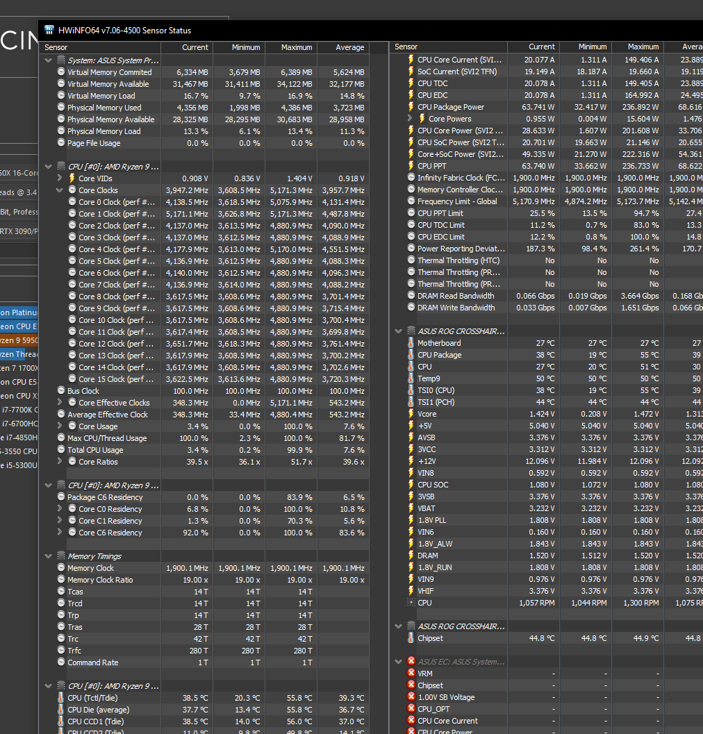 Делюсь болью и страданиями! В начале 2021 года купил я 5950X и материнку ASUS X570-I всё настроил спустя пару месяцев, радовался. Спустя пол года начались приколы, за неделю разок проскакивали ошибки WHEA Logger, по одной, потом через пару месяцев вообще критически ошибки WHEA Logger начали появляться и ребуты, причём под малыми нагрузками при просмотре видео или ютубчика, или при свёрнутой игре на паузе. После перепаковки водоблока на видюхе остались термопрокладки Gelid GP Ultimate, разобрал материнку, поменял термопрокладки на VRM, на обратной стороне VRM и на чипсете и вуаля, всё как рукой сняло. Напряжения CLDO VDDP, VDDG IOD, VDDG CCD получилось снизить до старых пределов. Какая связь между WHEA и охлаждением материнки я ХЗ. Но изначально начало помогать тупо обдув вокруг сокета 120мм вентилем. Теперь и без вентиля работает. Посмотреть бы на материнку в тепловизор.