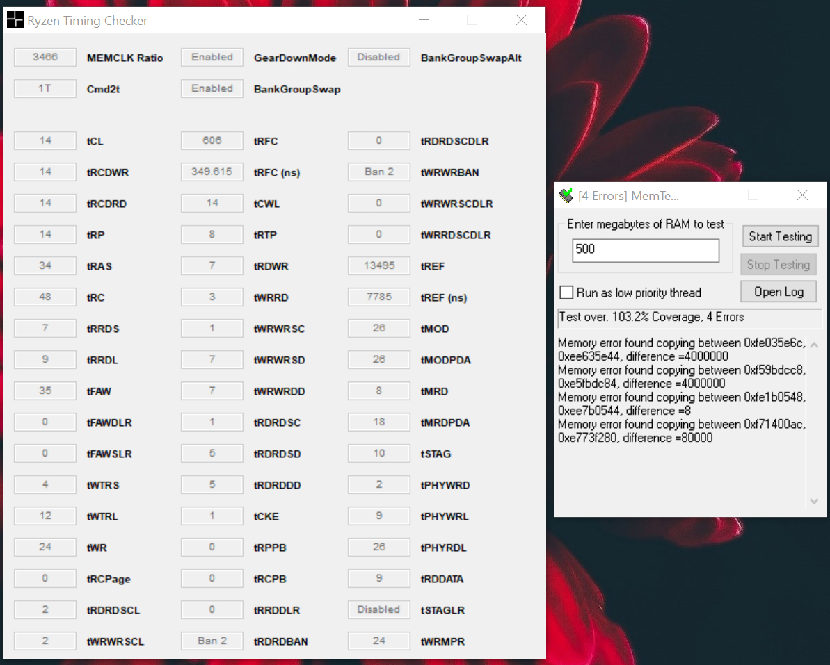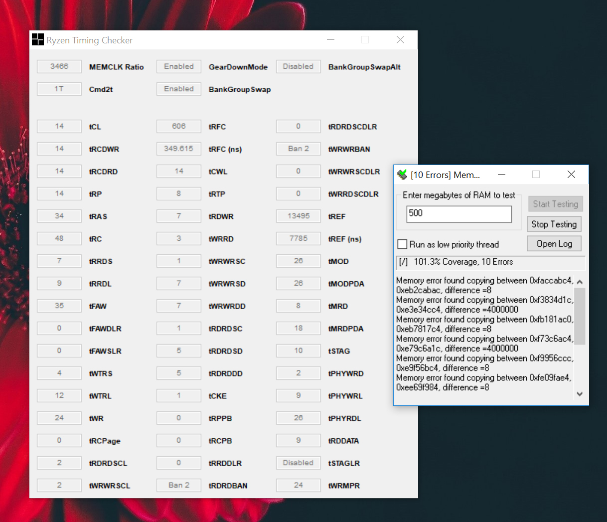 Чисто случайно выбрал число 50 для MemCkeSetup_SM, оно заработало, ошибок было порядка 50 на 100%, выставил параметр 51 и вот имеем уже 10 ошибок, на 52 - 4