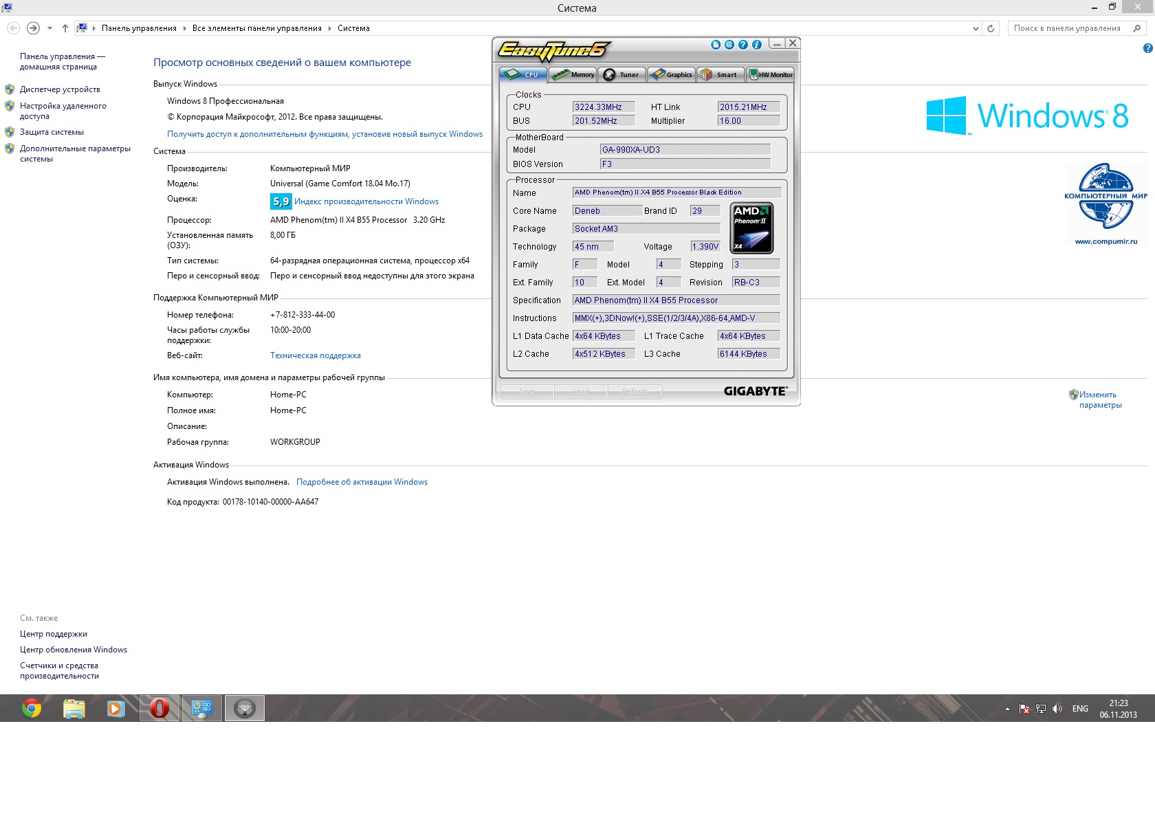 GA-990XA-UD3 AM3+ ATX RTL Phenom II X2 555 Black Edition + Cooler Master V6 ASUS EAN5770 CUCORE <KVR1333D3N9K2/8G> Pro Cooler Master SilentM600 <RS-600-AMBA-D3> Виндовс 8. 64б.