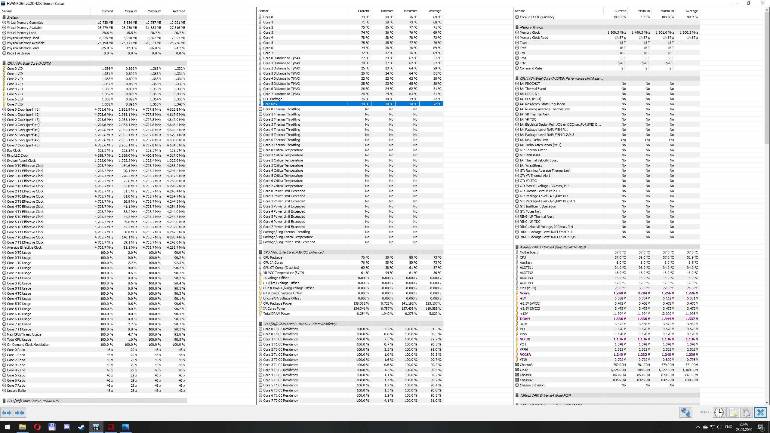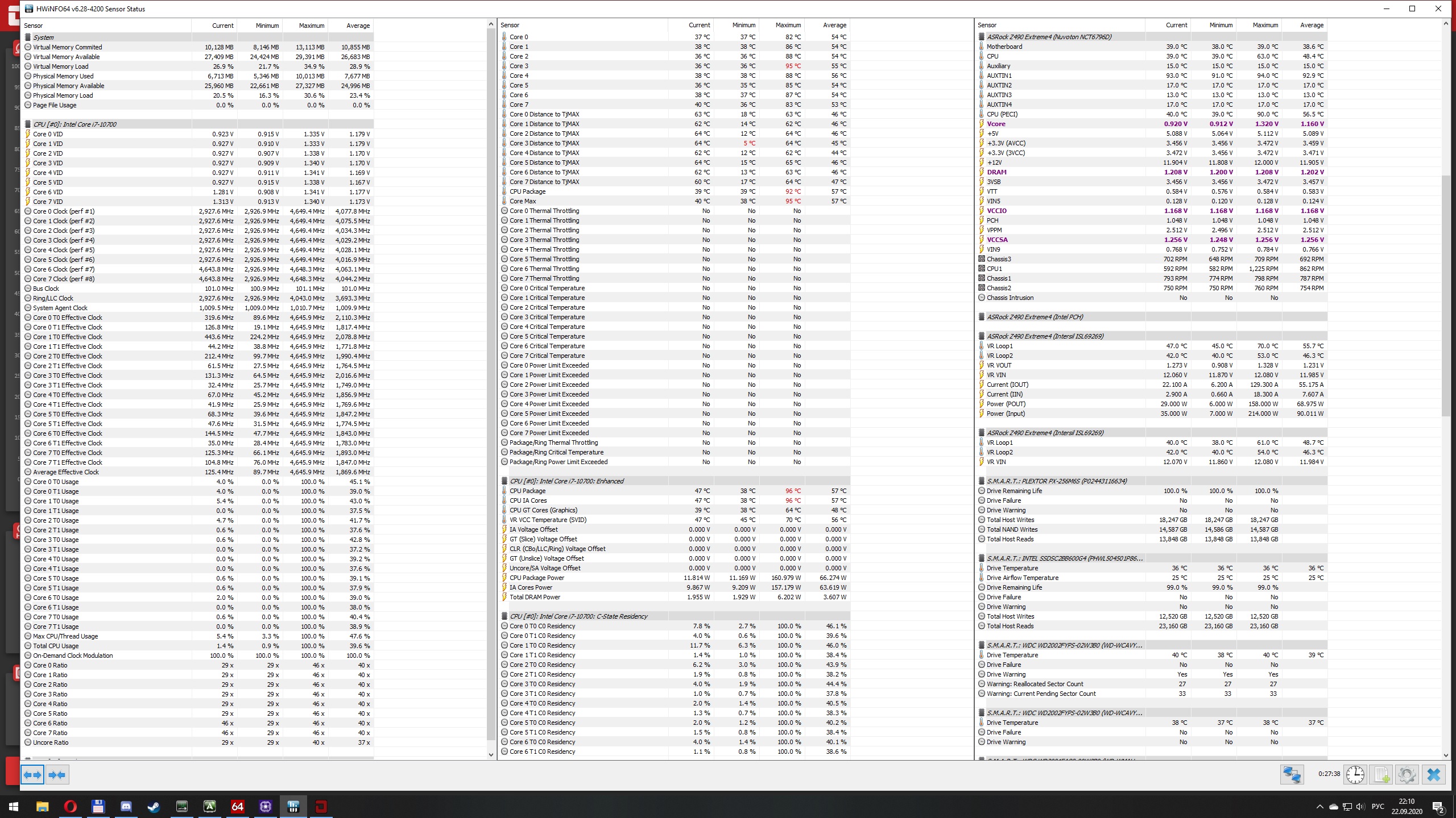 У тебя два ядра тротлят аж на 96 градусах, писали что тротлинг в этой серии включается на 100 градусах, однако странно... Сейчас затестил свой i7 10700k в осст в 5 минутном прогоне он показал максимум 86 по паре ядер а так 75 +- системник тоже закрытый и всего два вспомогательных на выдув по 120мм