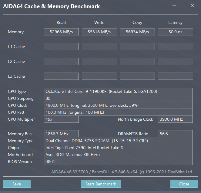 Это 11900к 5200 по всем ядрам. Чуть позже выложу 10900к на 5200, пока занят тот компьютер. Насколько помню, 10900k all 5100 - 600 и 7600 соответственно одноядерная и мультипоточная нагрузка в CPUZ.
