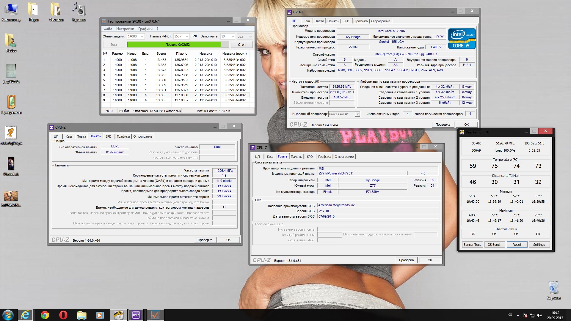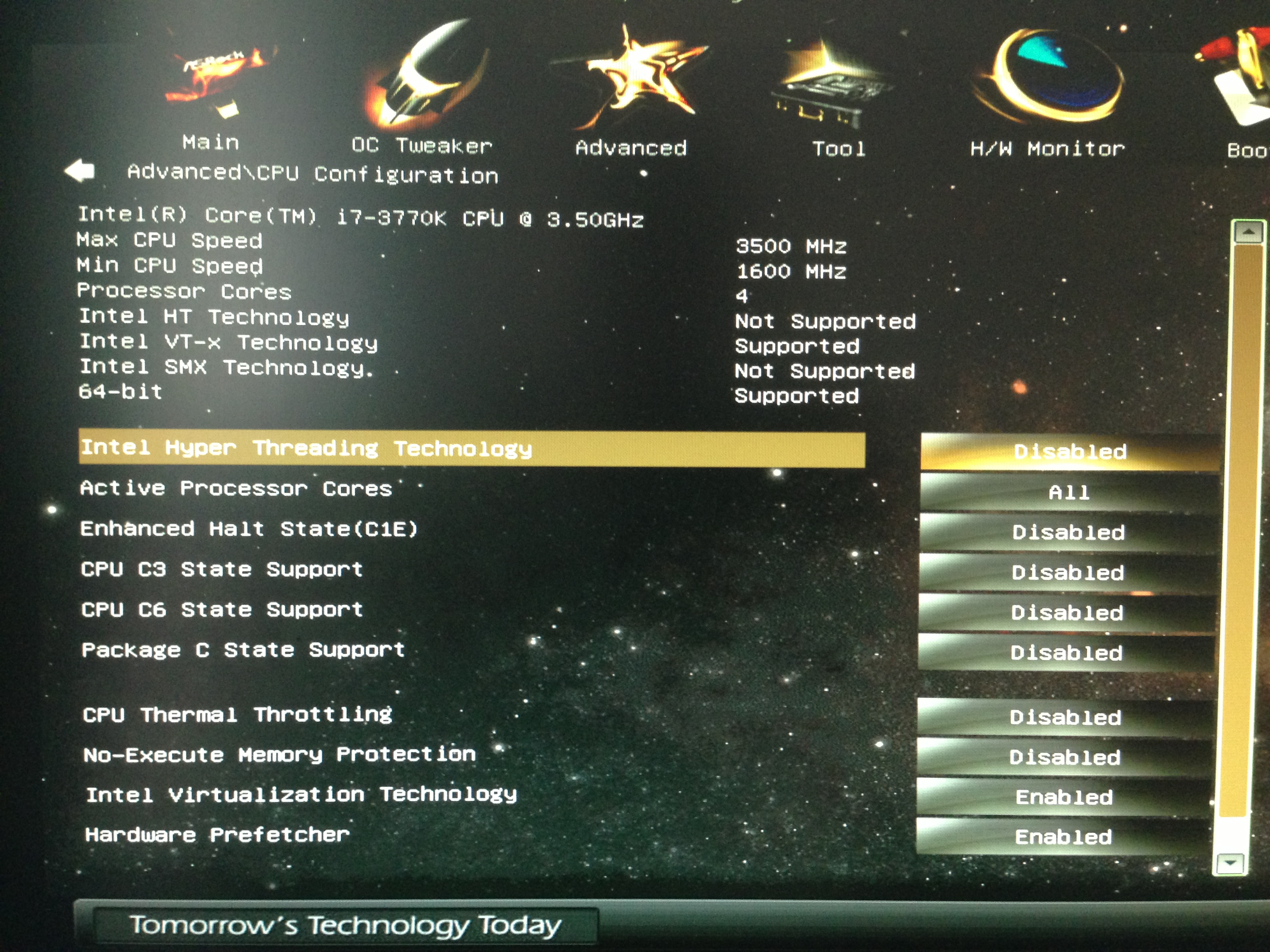 так вот подумал,зачем мне отключать HT если я купил i7 3770k,мог бы взять по дешевле i5 без ht ВКЛЮЧИЛ HT,ПОТРЕБНОСТЬ В НАПРУГЕ УВЕЛИЧИЛОСЬ ДО 1.280 темпа простоя 35-40 прогрев в линпаке 75с 110-ГИГАФЛОПС как считаете стоит ли включать хипертрединг(как заметил производительность упала)