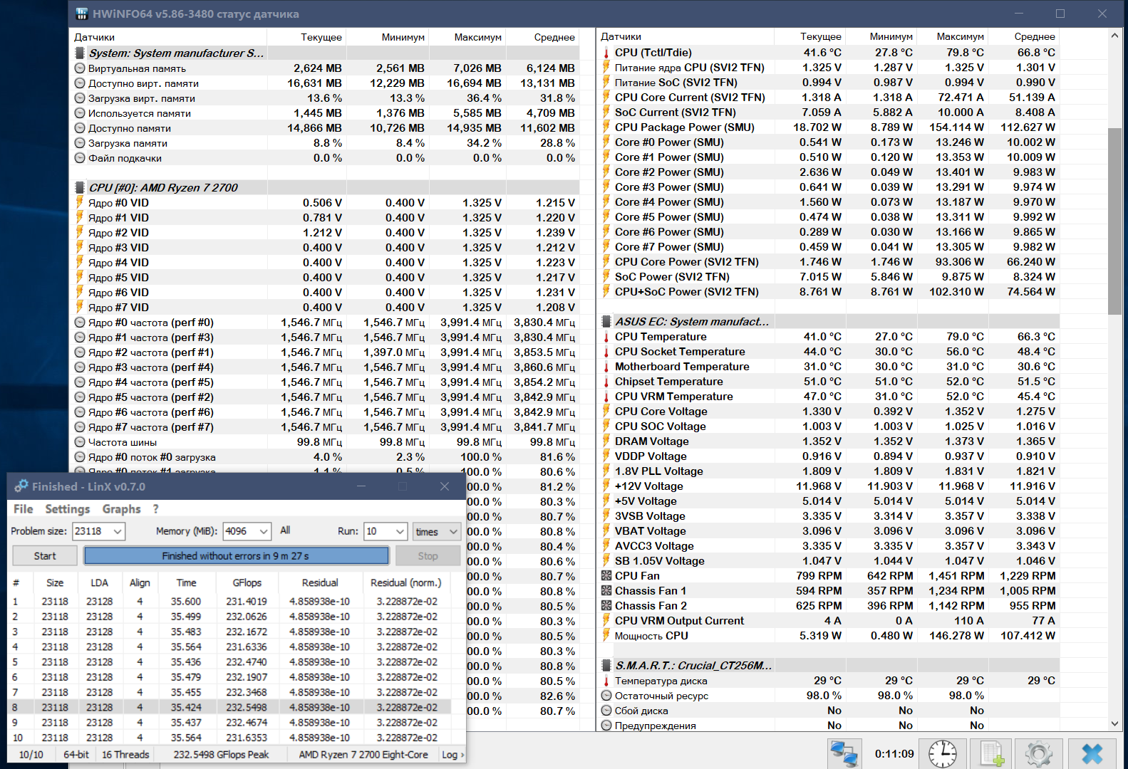 . Конечно данный разгон не максимально-оптимальный, так как смущает температура CPU при тесте в LinX v0.7.0.