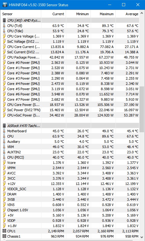 Я на боксовом кулере гоняю 4200+3466 Мгц и не парюсь. Ты температуры в играх никогда не увидишь такие, как в "грелках". Видел на Reddit отзыв, что многочасовые "забеги" в LinX и Prime "убивают" разгонный потенциал процессора. Так что "советчики" пусть сами в синтетике свое железо нагибают! Вот мониторинг, смотри Average:
