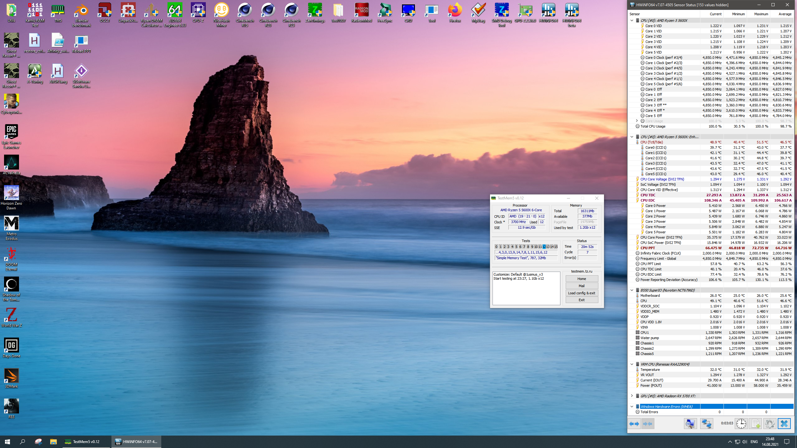 Фикс 450гфлопс, частота 4200 при 1,15 вольтаже 92 градуса, 150W Но значения linx были 30600/7168. Абсолютно пустые значения т.к. 9900 с фиксом на 4400 даёт 460гфлопс. Но в реальной задаче, на подобии видеокодирования 9900 даже на частоте 5300 не сможет догнать райзен 5800Х.