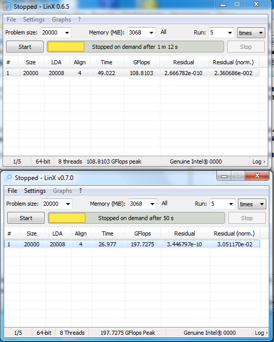 Postarc А результаты сравнивая с версиями 0.6.5 и 0.7.0 одинаковые? Проверял на 0.6.9 хоть и с ошибкой но результат был 227Gflops против 207Gflops на 0.6.5 версии.