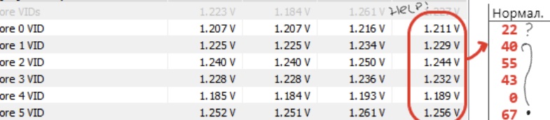 Что значит если Core VID колонка Average по всем ядрам почти идентичные вольтажи? Не понял куда двигаться дальше.