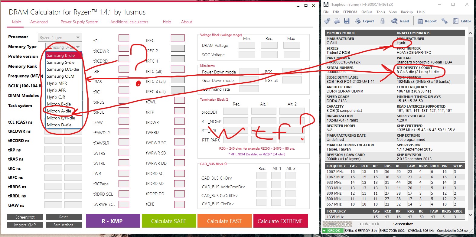 по калькулятору для b-die не заметил разницы с тем, что раньше предлагалось, буквально тайминг в тайминг, tRFC только чуть ниже, но не кратный tRC, как в описании говорится, может бракованную версию какую скачал?
