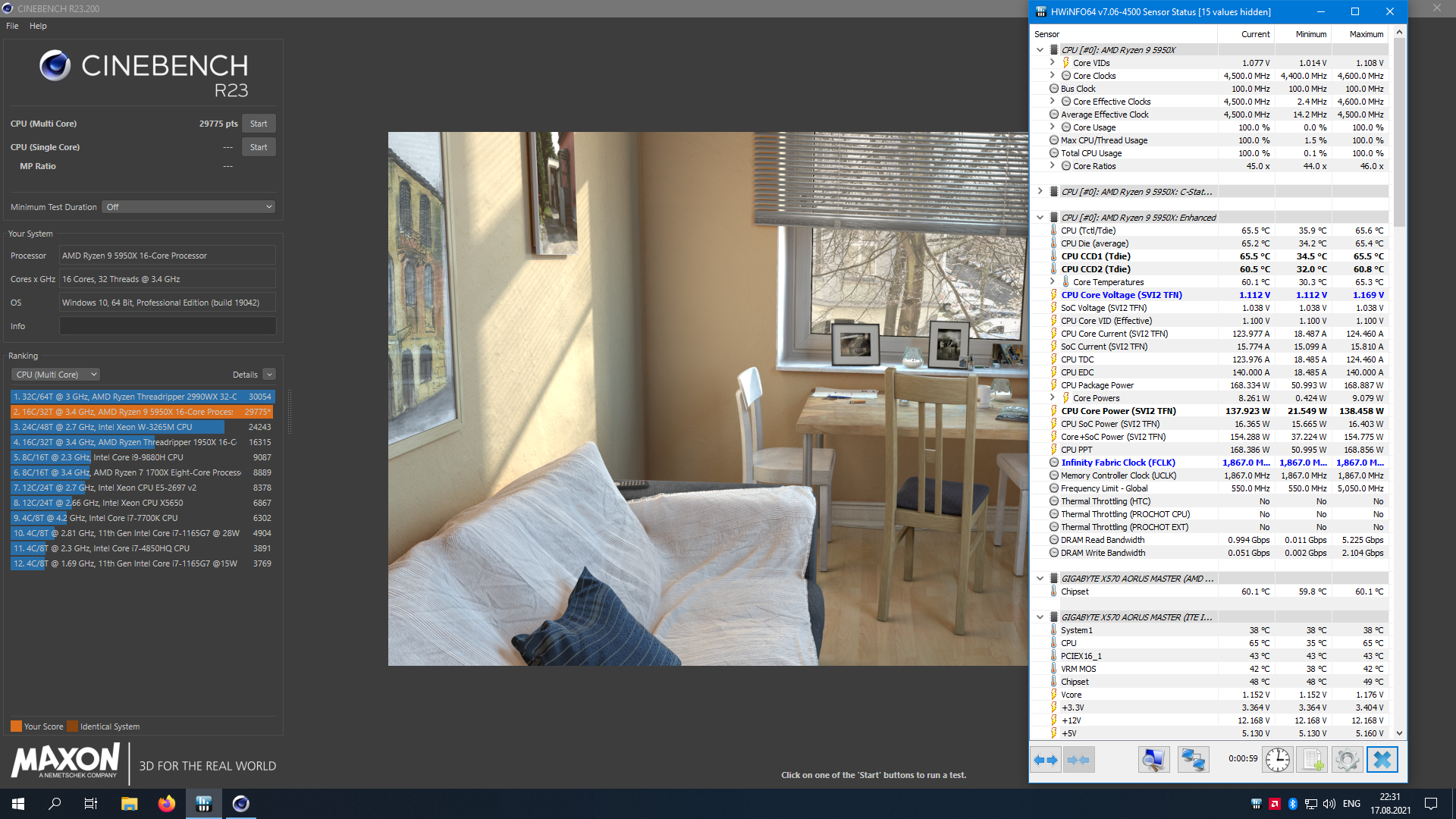 5950Х без разгона выдаёт порядка 27-28к в СВ23. С РВО2 можно получить 30к или чуть больше и температуры под 90°. А вот фикс для воздуха: