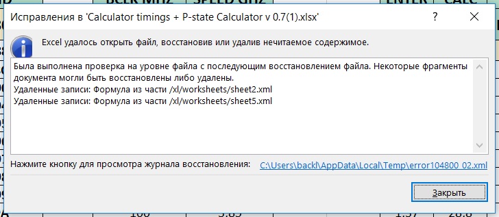 Тайминги считаются, а вот запас прочности уже нет. Накатил 2016 офис, но безрезультатно, ошибки не исчезли. Эксель по прежнему удаляет (но не исправляет) записи которые считает ошибочными.