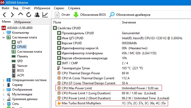 У тебя PL1 и PL2 локнуты:69W и 86,3 соответственно. Если не было ограничений то эти строчки содержали unlimited power/unlimited time.