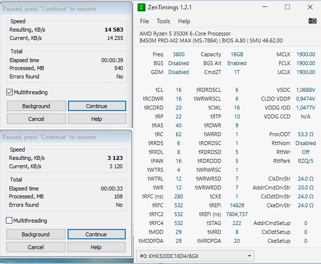 Скорость: 4549 KB/s i5-9600k@4200Мгц vs Ryzen 5600X@4200Мгц (stock) Скорость: +54,8% в пользу AMD i5-9600k@4900Мгц vs Ryzen 5600X@4200Мгц (stock) Скорость: +52,6% в пользу AMD