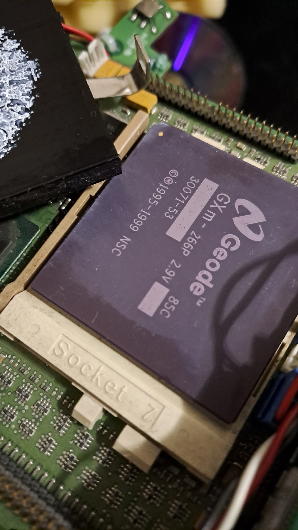 Далее, я имею несколько плат от касс, как с сюриксами, так и с геодами. Механически на них на всех 146% Socket7. На нём даже написано Socket7, что можно видеть на одном из фото выше (фотки мои, реальные).