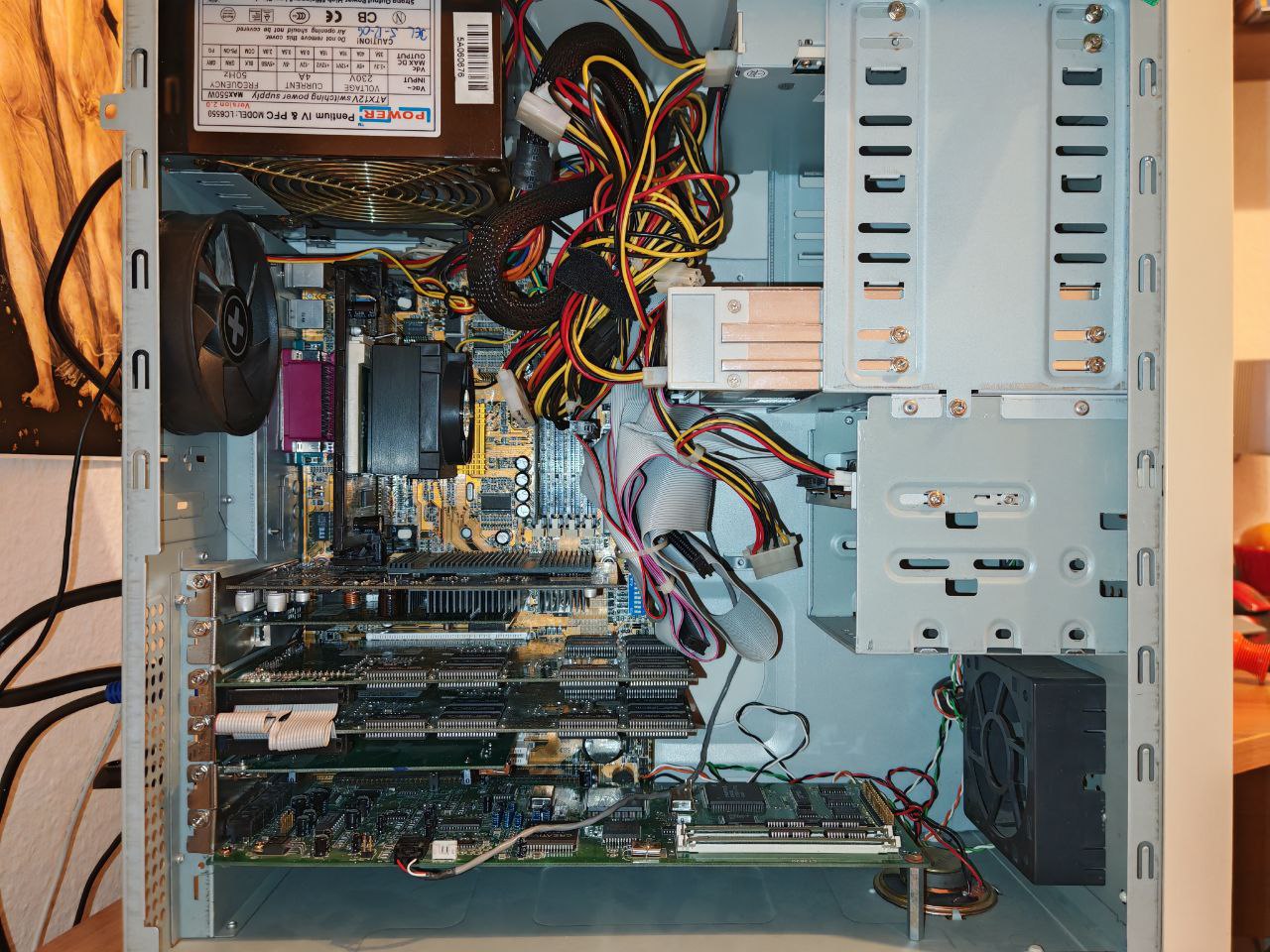 У меня есть целый набор процессоров для этой платформы на случай, если понадобится запускать очень старые игры. Pentium II и III 233 350, 450, 500, 667 MHz. Но для выставки важнее, чтоб хорошо шли DirectX7 и Glide игры, тот же Q3 и Unreal. А насчет охлаждения это хорошая идея.