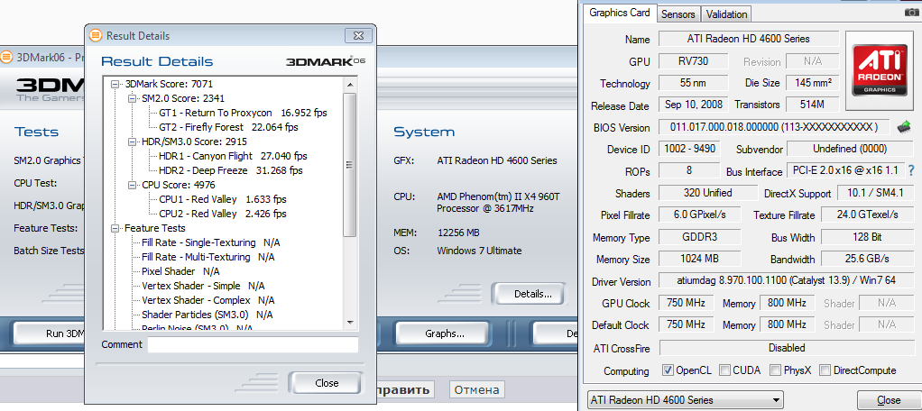 Тут, кстати, помучил немного HD4670, я про нее упоминал, с артефактами и падениями драйвера. Мучил по всякому, вроде все нормально. Запустил марк06, как то маловато вроде, не? Эта карта чуть слабее 3850 должна быть, а 3850 у меня на q6600 около 10к набирала.