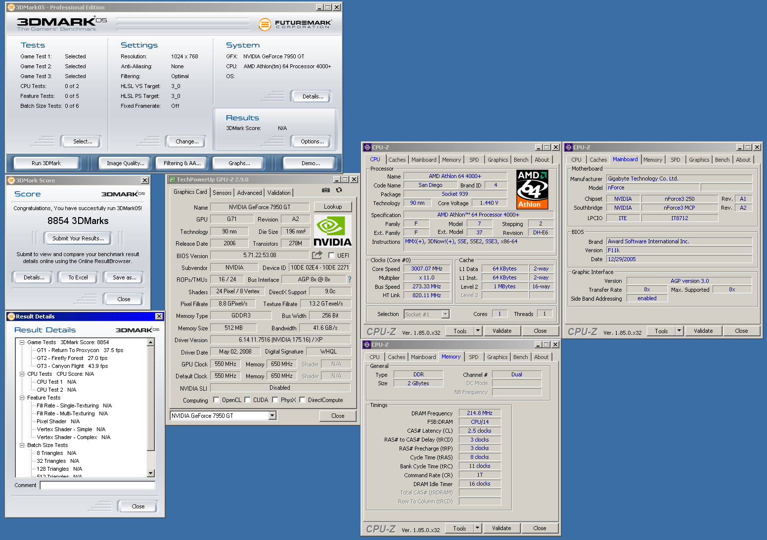 что касается более современных машин, у меня так же есть комплект на P4-520, а так же есть машина с C2D E4300 к сожаление там нельзя установить видеокарту, работает только на встройке, еще есть ретро ноутбук на C2D 2ghz 2gb рам, 8600GT, кстати до сих пор его использую в качестве телевизора на кухне, да и просто серфить с него нормально.