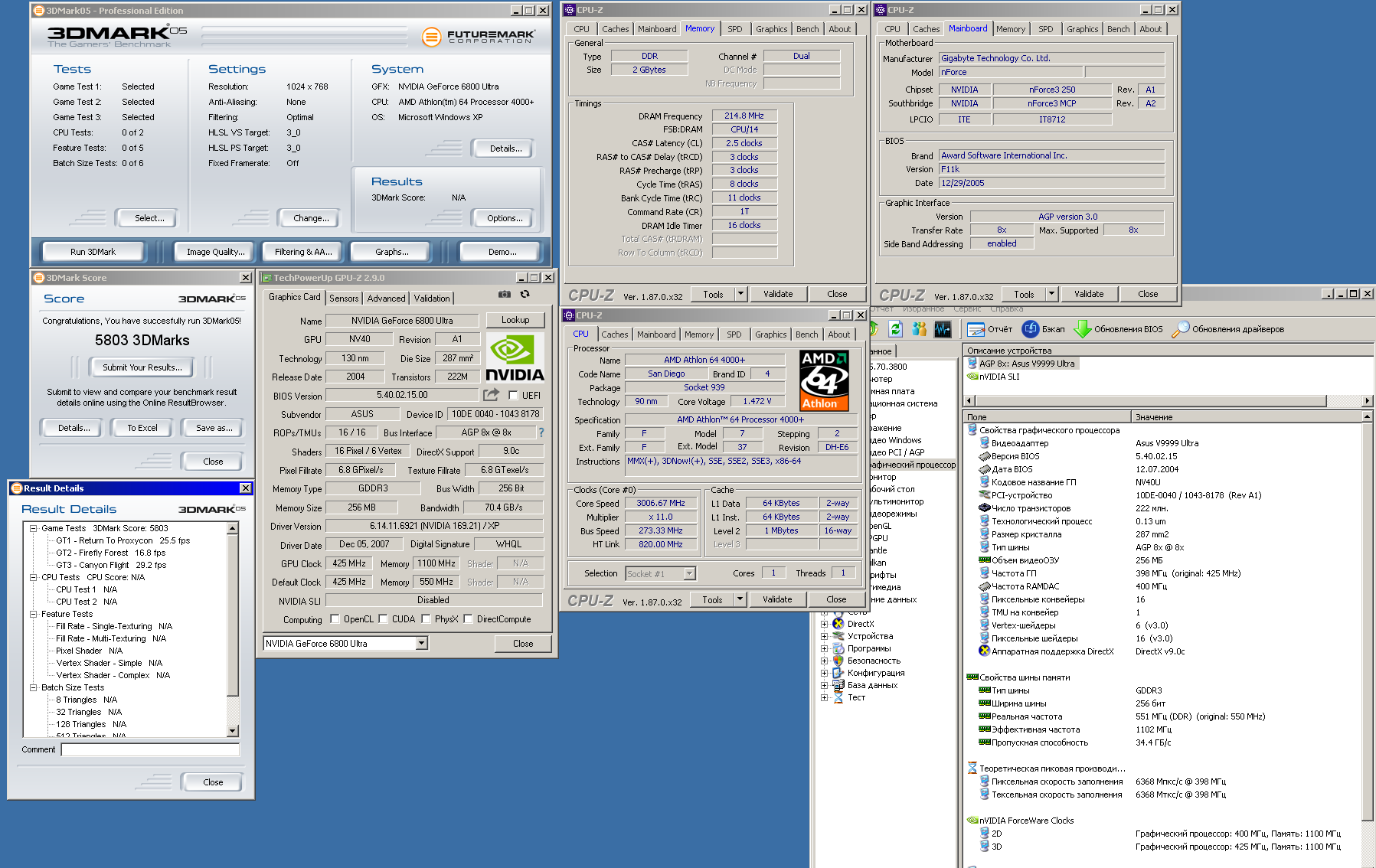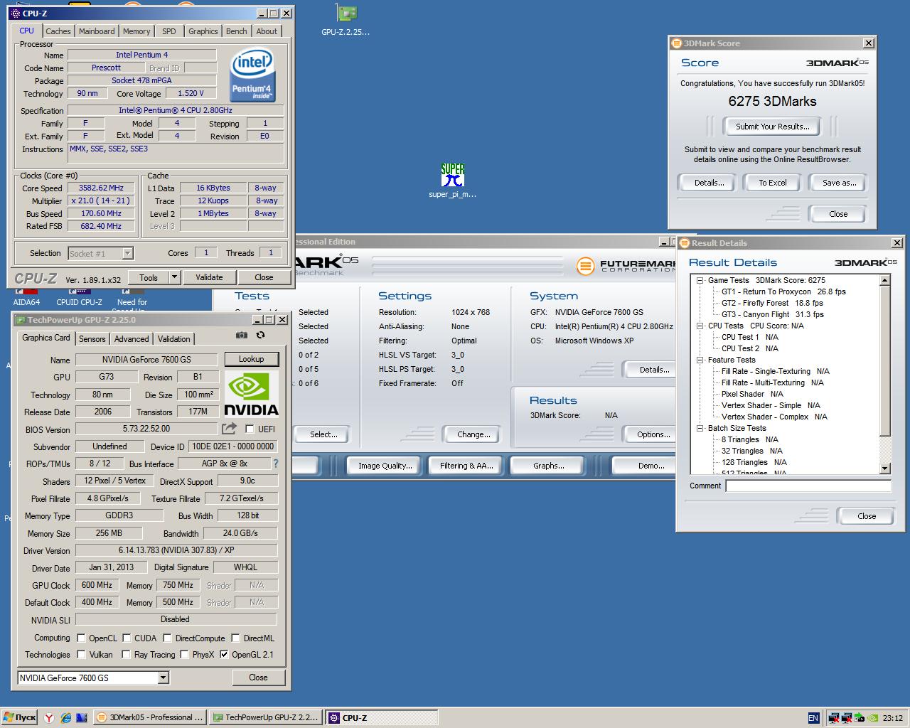 Продолжаю эксперименты над P4 3ghz (Прескот 1м s478), разобрался из-за чего у меня были артефакты во время сильного разгона, дело было в памяти, если снизить делитель, то все работает прекрасно, но память тогда работает на 410 DDR, в место 500, наверное это влияет на производительность, но учитывая убогость архитектуры P4 это не сильно ему помогает, в общем то по прежнему не могу нормально играть в Far cry и NFS undeground-2 даже на частоте 3.9 проца не хватает.
