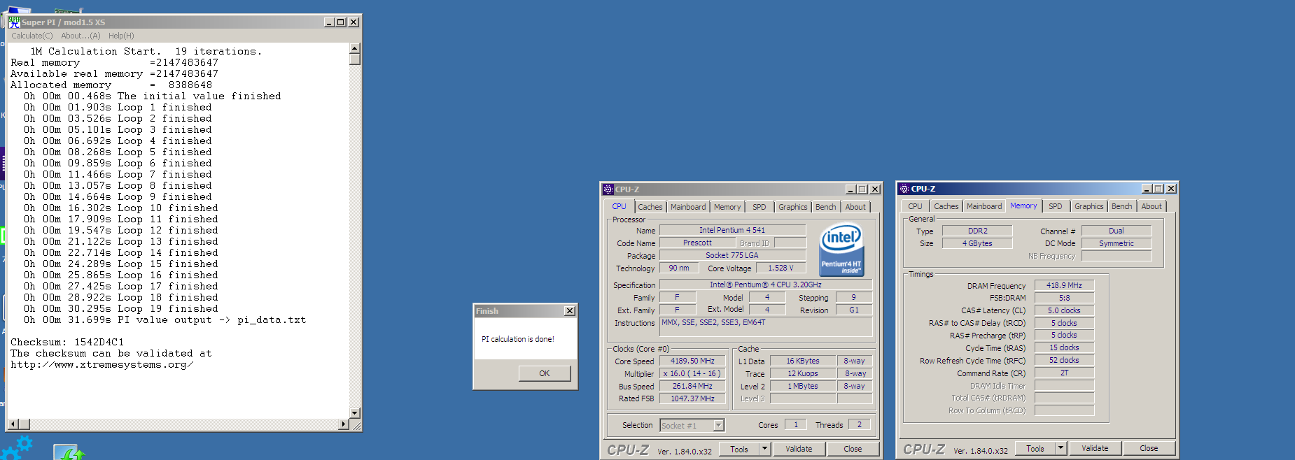 Могу для тех кому интересно свои суперПи все на одном скрине скинуть, может будет познавательно на какой частоте 775 Прескот догоняет 939, или Нортвуд догоняет 462.