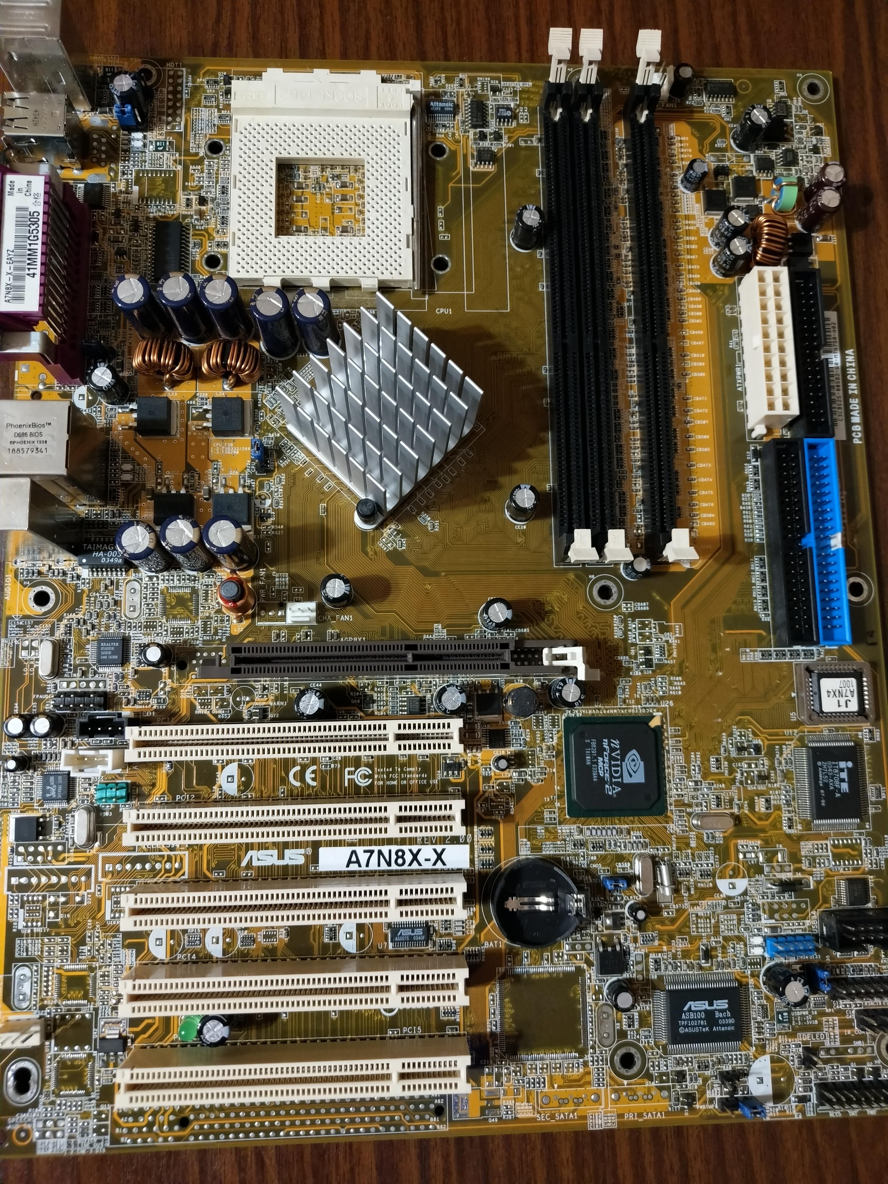 материнки asus a7n8x-x и msi 694t pro чипсет via с поддержкой туалатинов,но биос фиговый из таймингов можно лишь tcl менять,обе были сильно грязные,теперь вымытые аж скрипят от чистоты)