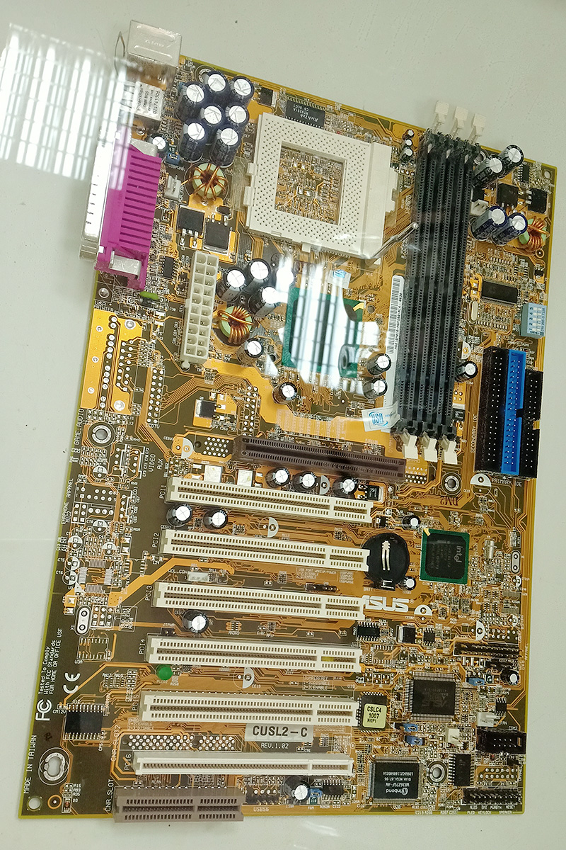 В комплекте прилагалась CUSL-2C, P3-866, 1*512 PC-133, CT4810, 3C905C-TX-M, какой-то хард, привод, флоппик и корпус с вертикально расположенным блоком питания.