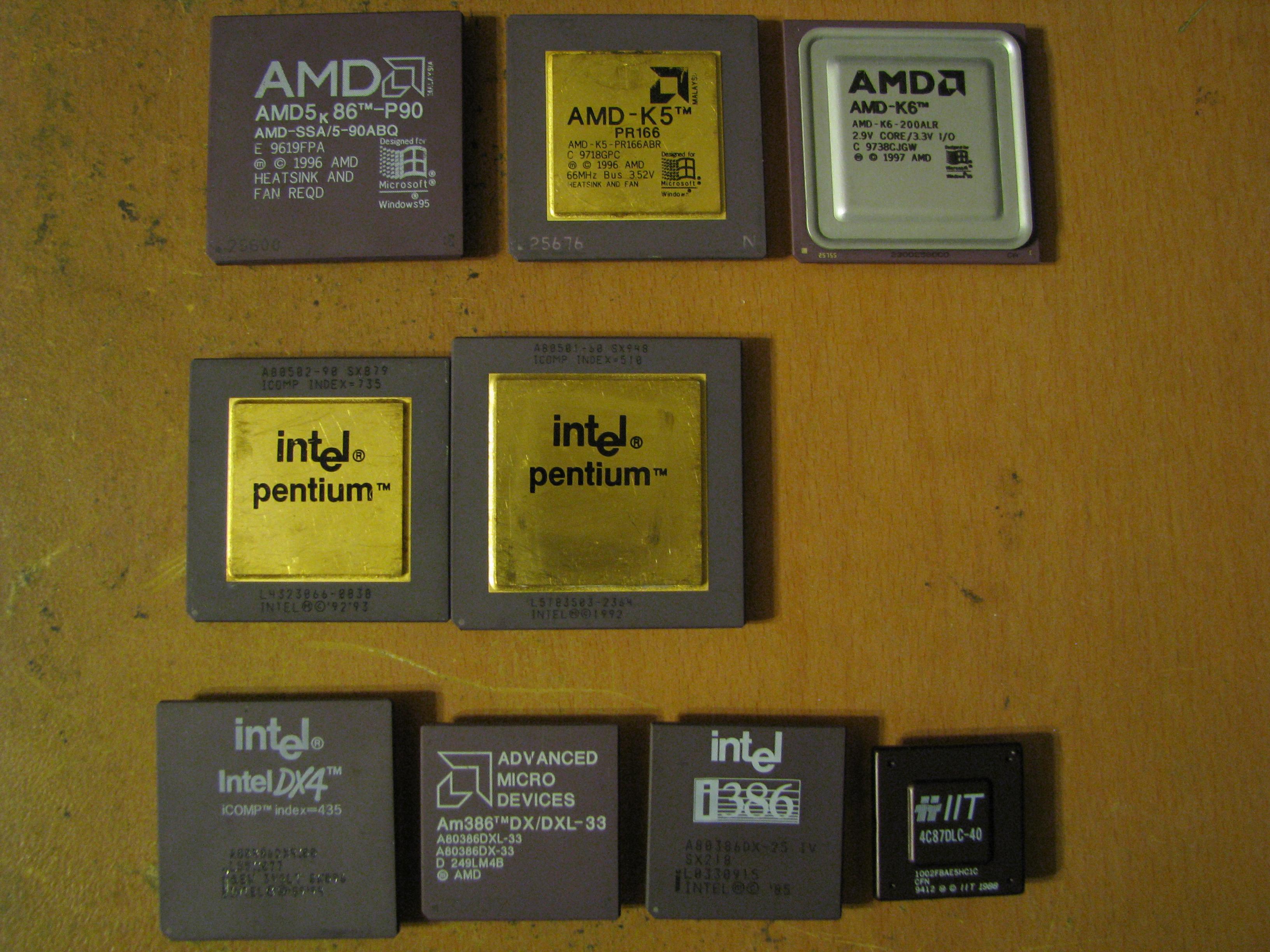 а вот вчера пополнил коллекцию еще парой процов и прочих штуковин) (остальные 3 фото) amd Am486 dx-40,amd Am5x86-P75 (amd-x5-133),p1 mmx 166 ati rage 2+ и какая-то старая звуковуха доска ATX/AT s370