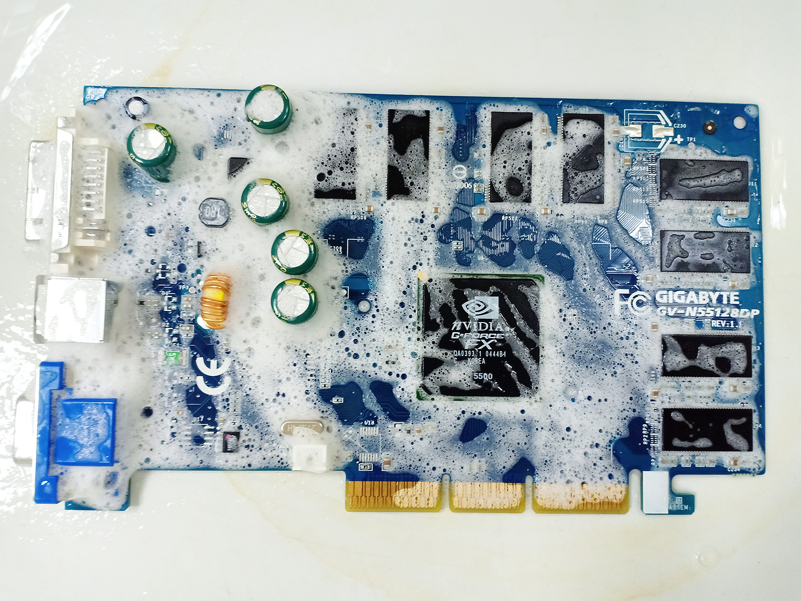 Изначально брал ее только ради вентилятора для Albatron Ti 4800 SE. Оказалось что карта не самая банальная NV34 - во-первых частоты с завода 300/250 МГц вместо 270/200 МГц, а во-вторых память стоит аж 3.6 нс, хотя здесь вот писалось что 4.0 должно быть. В общем, интересный оказался экземпляр, решил его оставить.
