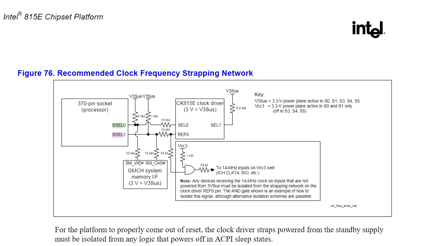 Слушай, а можно отзеркалить эту же просьбу? АТО надоело твою ахинею читать. https://download.intel.com/design/chips ... 823401.pdf У i815 жостко завязаные делители шины/памяти/АГП которые заводятся в него BSELами с ЦП. Точка, кончай фантазировать. шина 066 память 66/100 ПСИ/АГП 33/66 шина 100 память 66/100/133 ПСИ/АГП 33/66 шина 133 память 100/133 ПСИ/АГП 33/66 ВСЁ. Остальной разгон идет КРАТНЫМ увеличением всех частот.