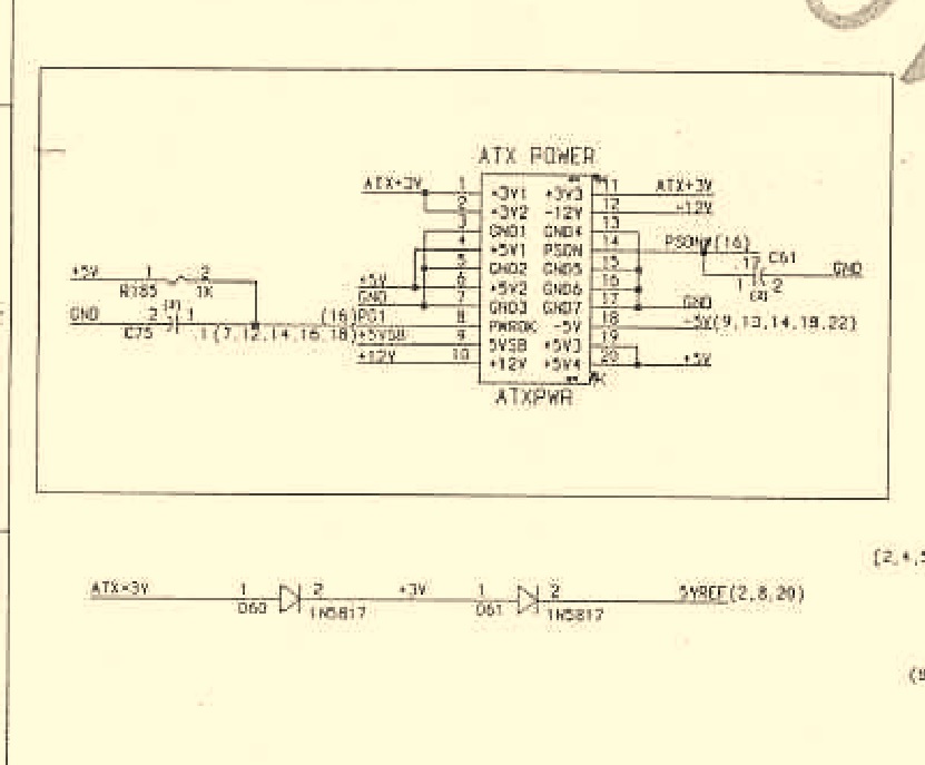Из этого следует. Элемент D7 одной ногой сидит на ATX +3v, второй ногой формирует начало линии +3v #77