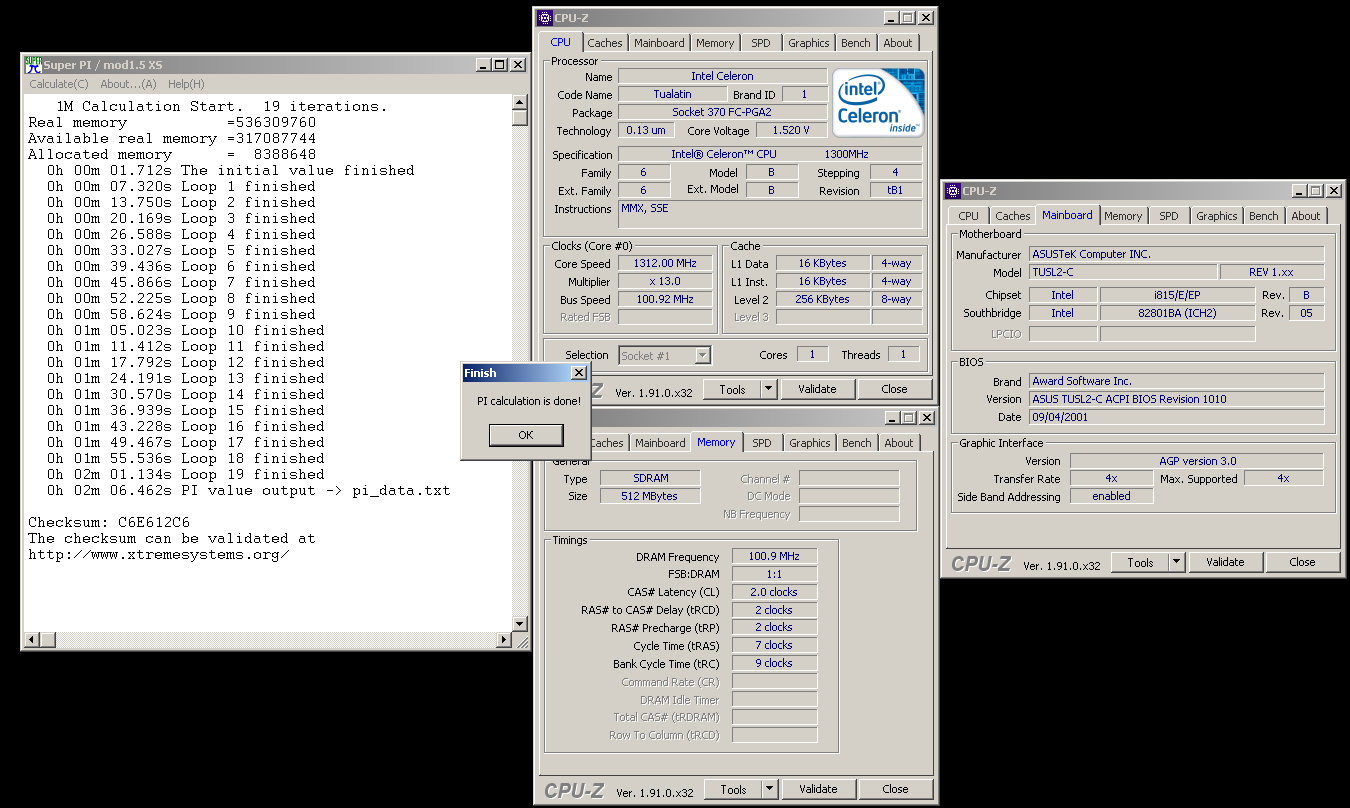 alexmaj467 похоже в таймингах дело, если мой результат с CL2 пересчитать на частоту 134, как раз около 1:35 и получается, остальное дали твики возможно.