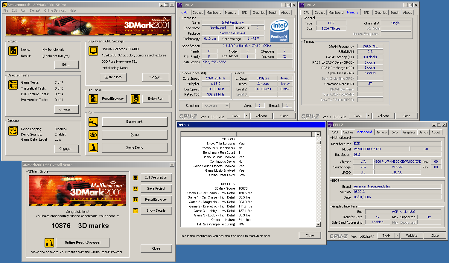 Это карта не из объявления с компами, ссылку на которое скидывал ранее? Да норм результат. Пень4 2800 с римами 1066мгц +ти4200 также дает(все в дефолте) . А вот настроенная система на атлон 2000+ и ти4200 лишь чуть отстает(кт266а+ддр266)