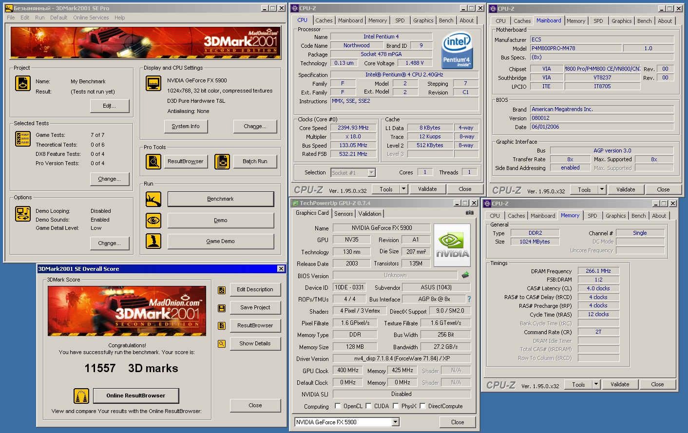 Добавлено спустя 20 минут 15 секунд: Теперь можно проверить потанцевал. Начинаем по традиции с 01 марка и говносборки пентиум4, вместо которой можно было бы купить нормальную систему на АМД, если бы людям не впаривали бы Интол.