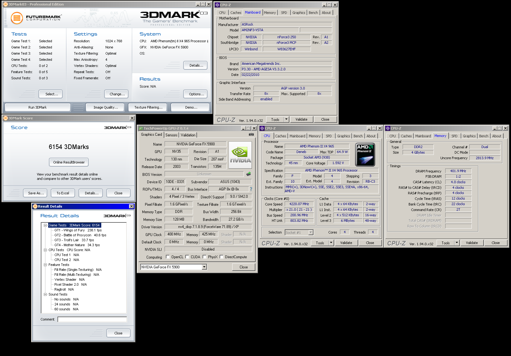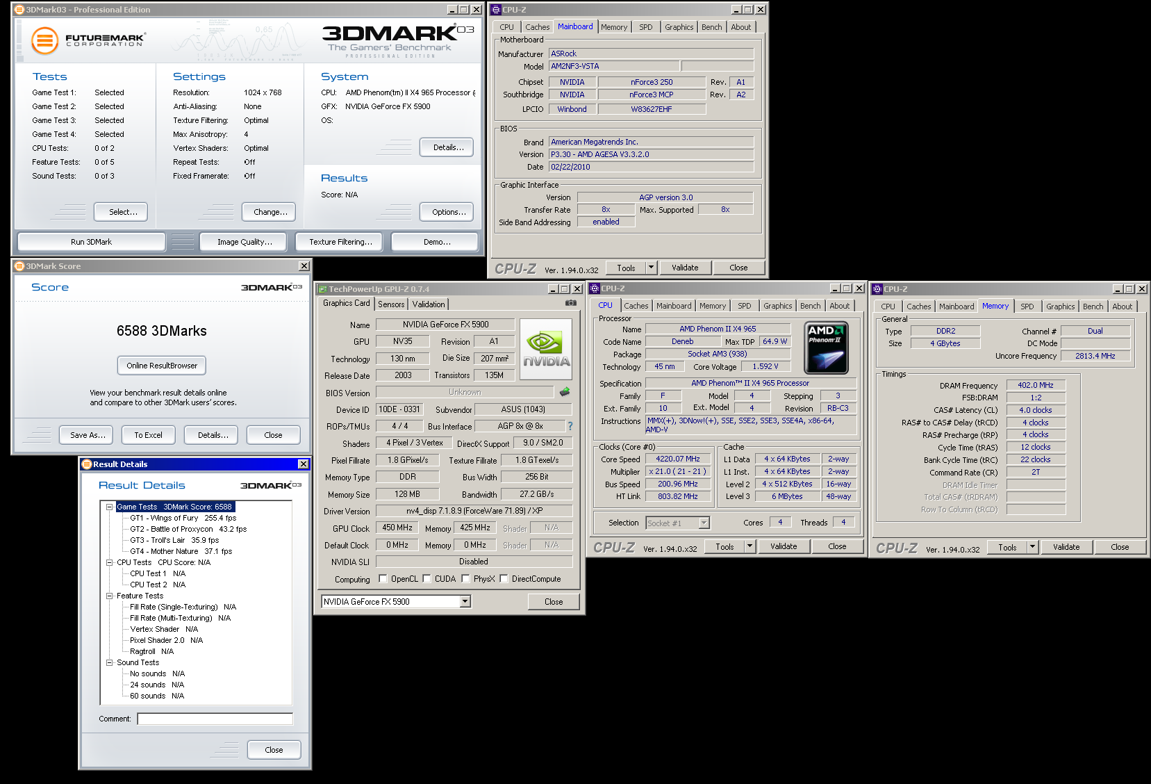 Ну и напоследок посмотрим, что принесет в 03 разгон чипа до частоты 5900 Ultra - 450 МГц. При увеличении частоты на 12,5% количество попугаев выросло лишь на 7%. Я ожидал большего