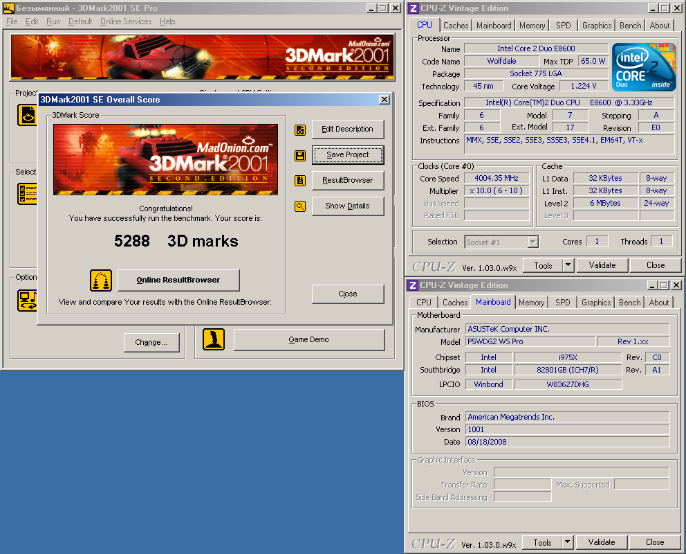 Всё ещё копаюсь играюсь в 3DMark со своей Voodoo 5 6000 PCI То и дело натыкаюсь на какие-нибудь глюки то драйверов, то платформы. Платформа: CPU: Intel Xeon W3690 (3.47 GHz) Mb: Supermicro X8SAX RAM: 3 GB PC3-10600 ECC (DDR3-1333 CL9) Micron