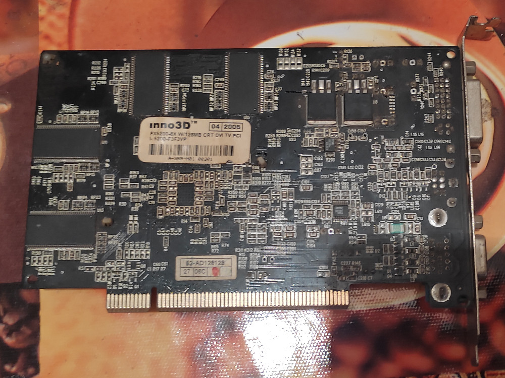 max1024 NVIDIA GeForce2 MX400 если вы не в курсе то две маленкие микросхемы у этой карты то же мост с AGP-PCI,там где моста нет то чистые PCI карты,так как такой же мост был у меня на карте Riva TNT2 M64,а вот на карте GeForce2 MX400 у меня его нету как раз,по поводу GF430 и так же есть и GF 520/610 у них со времене происходит отвал чего именно так и не понял скорее всего этого чипа моста PL,так как у самого валяется дохлая GF430