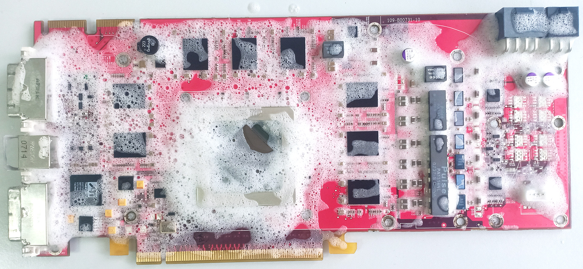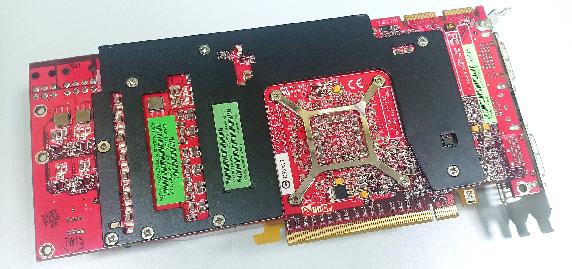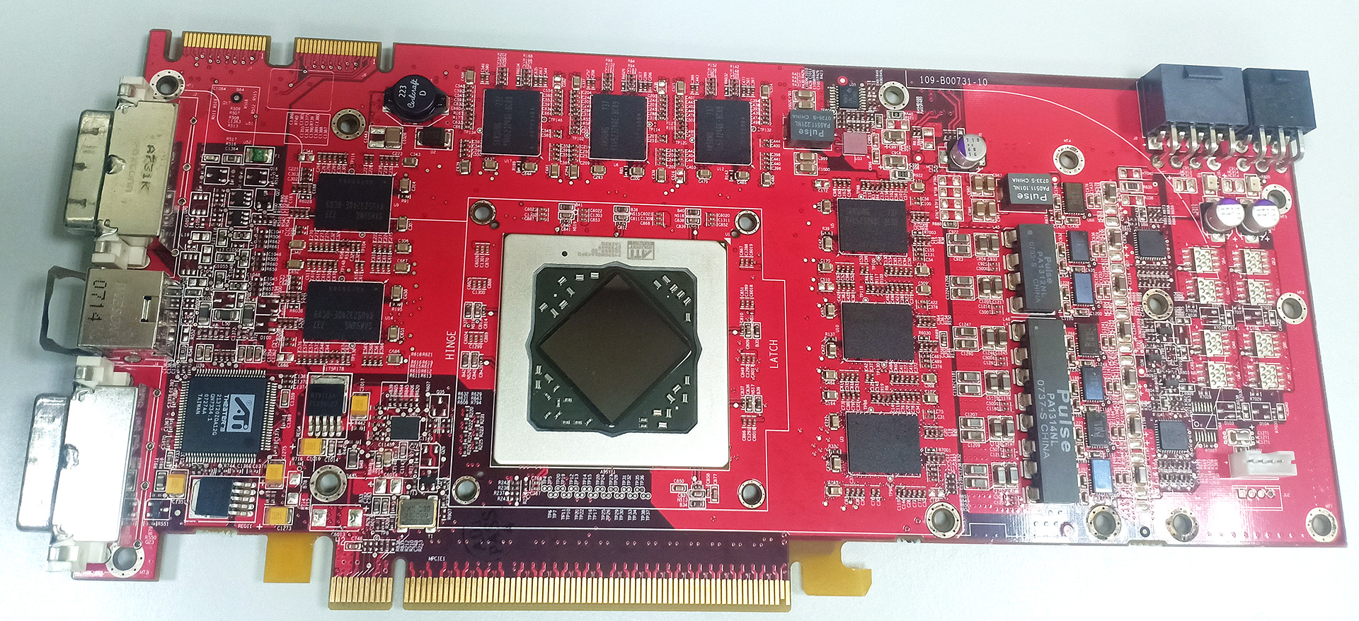 Последний флагман с логотипом ATI. Насколько я помню, выход практически совпал с продажей ATI AMD, поэтому формально это первая карта AMD, но на рамке чипа написано другое