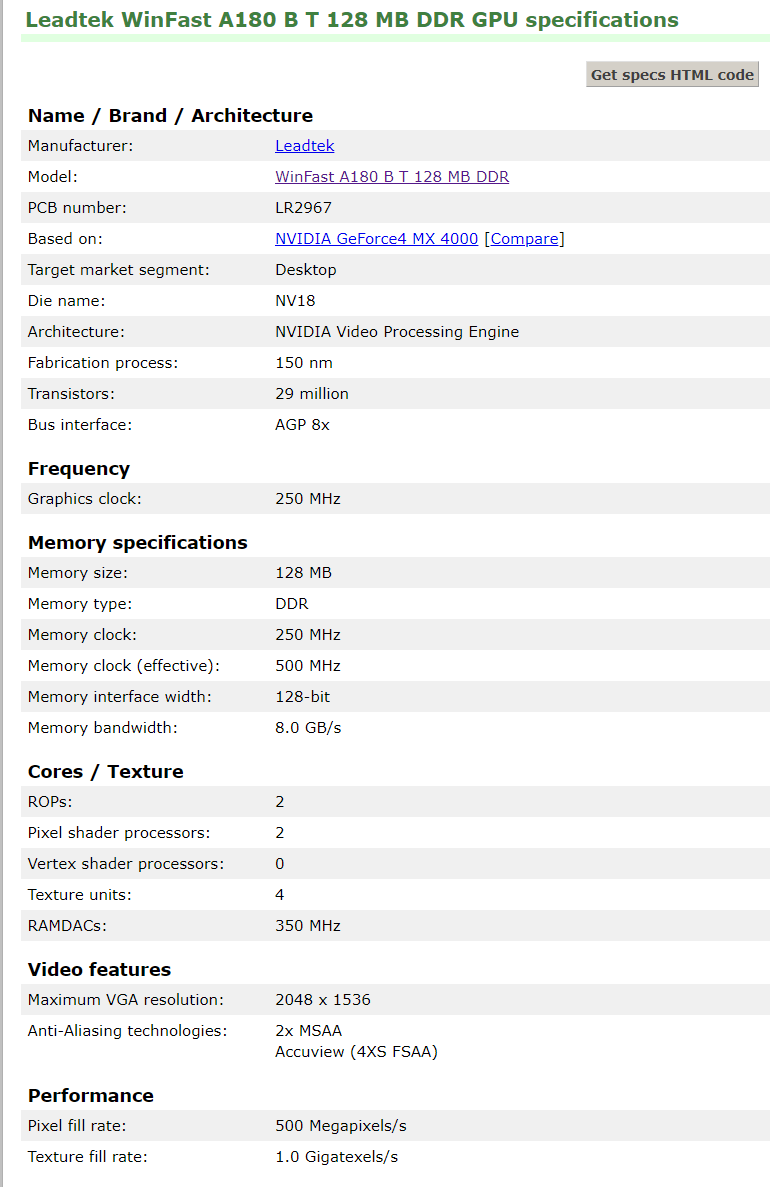 А я откопал свою видюху, электролиты все же вздуты... Получается, из древнего живые только звук, USB2.0 контроллер и PCI-сетевухи 100 мбит. Никому не надо? А по памяти вообще грустно, какие-то модули 256 и 512 Мб.