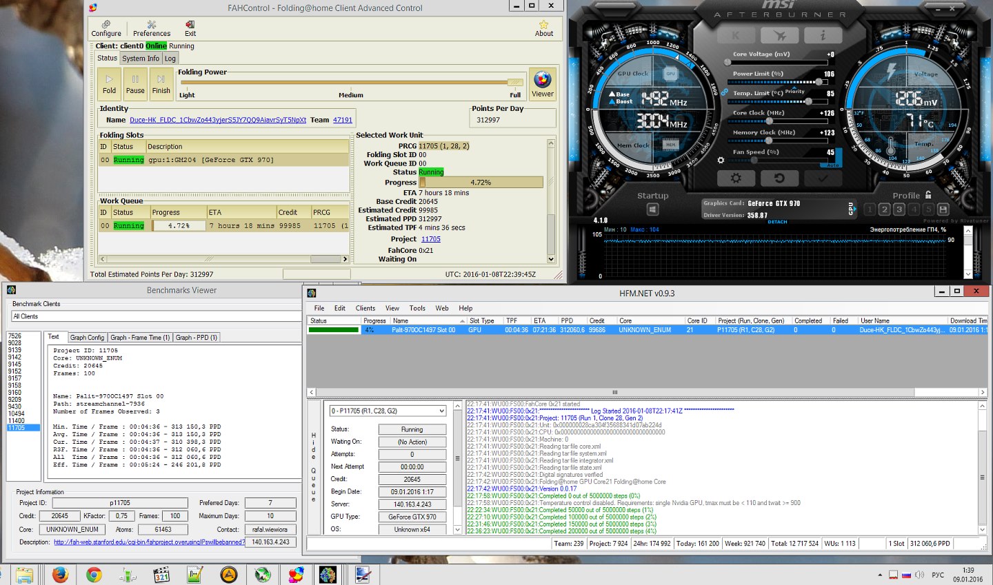 много WUшек запорол я до этого. Но оно того стоило. Задача была посмотреть на что способно мое ведро с болтиками максимально близко к номинальной мощности. UPD. #77 Если видите подсвеченный график в MSI AB - срочно ставить слот на паузу и откатывать частоту/дрова! 00:16:34:WU01:FS00:0x18:WARNING:Console control signal 1 on PID 992 00:16:34:WU01:FS00:0x18:Exiting, please wait. . . 00:16:35:WU01:FS00:0x18:Lost lifeline PID 368, exiting 00:16:35:WU01:FS00:0x18:ERROR:103: Lost client lifeline Еще чуть-чуть и выплюнуло бы жабу от зависшего драйвера. Отодвинулся на 1557/7220 Выблевало все-таки. (((