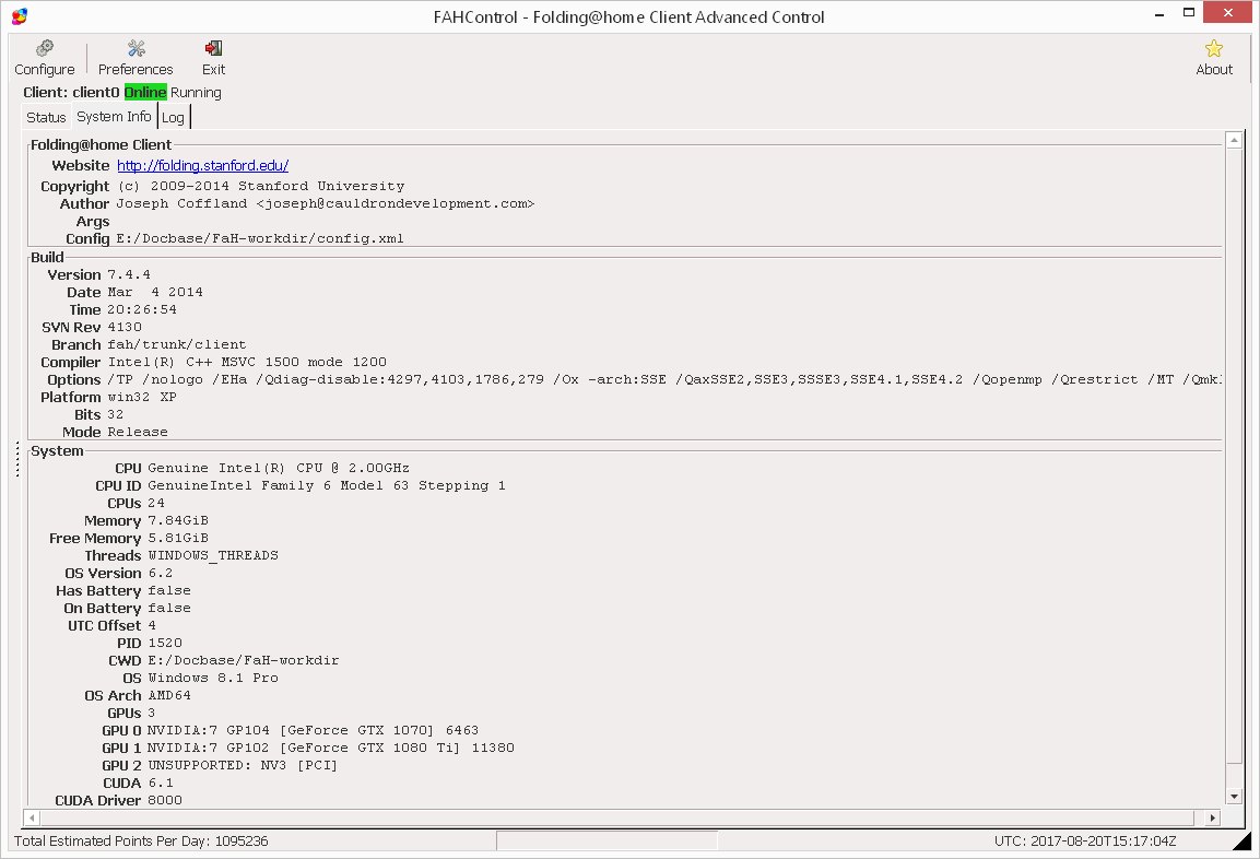 На счет загрузки ядер и подтормаживаний: проблему вижу как мне кажется в связующем, то есть мат. плате, а точнее ширине шины и чипсета. У меня при двух из двух запущенных видиков ютьюб показывает артефакты оч часто, вырубаю одну, ведущую, то же самое, вырубаю обе, все ок. На температуры не грешите, на системник (без крышки ессно) херачит 100 ватный напольный вентилятор, скинул с видиков от 8 до 15 градусов в зависимости от заданий. Проблема в том, что нынешние чипсеты и шины попросту не предназначены для таких заданий. Даже квад видиков в игрульке работает иначе и не грузит систему так, как это делает Фолдинг. Увы на моем камне нет встройки, не могу проверить на ней. Но вот подумав над всем этим, задумался, есть ли смысл брать Asus x99 Ws, по крайней мере в случае когда компьютер будет основным. То есть, что бы кранчило и попутно юзать системник. Это разве что в стойку вторую машину собирать. Вообще конечно обидно. Кранч менее прибылен по всем статьям, но куда дороже стоит, начиная от мат. плат, заканчивая рейзерами. Да да, я понимаю, что это дело добровольное, но как было бы хорошо, будь копейка дороже, лично я бы мог себе позволить докупить мощностей, а сейчас уже не получилось отбить деньги на тишку, которые взял в долг. Не то что бы страшно, просто думал успею обернуться на волне хайпа и подняшейся цене за копейку. Увы не успел. А майнеры вливают миллионы, что бы считать "воздух". Друга пытался завлечь сюда, у него сейчас пара ферм по 6 Тишек, он сомневался сомневался, а потом где то накопал ссылку и мне скинул. В ней говорилось, что те данные, которые мы кранчим, Стенфорд потом хорошо так продает на патенты фармацевтическим компаниям. Майнит дальше...