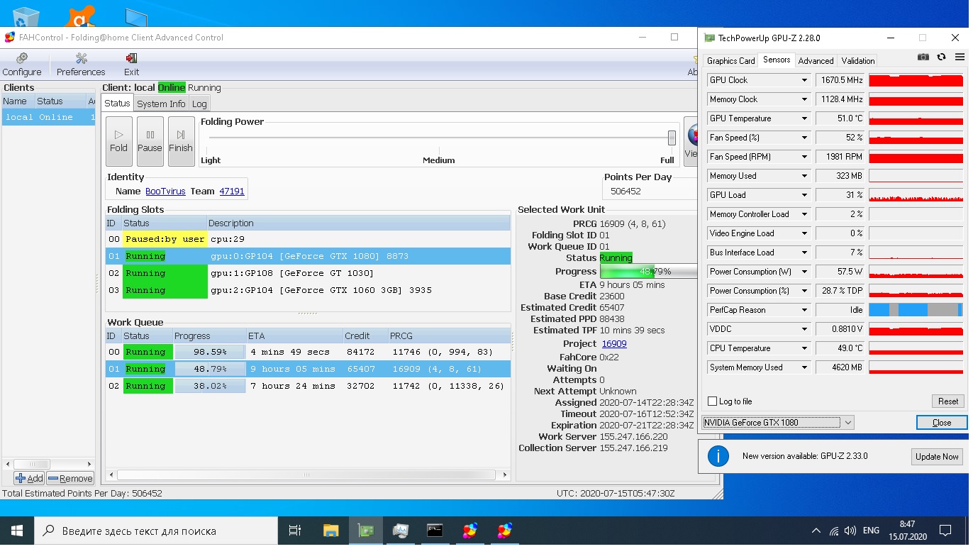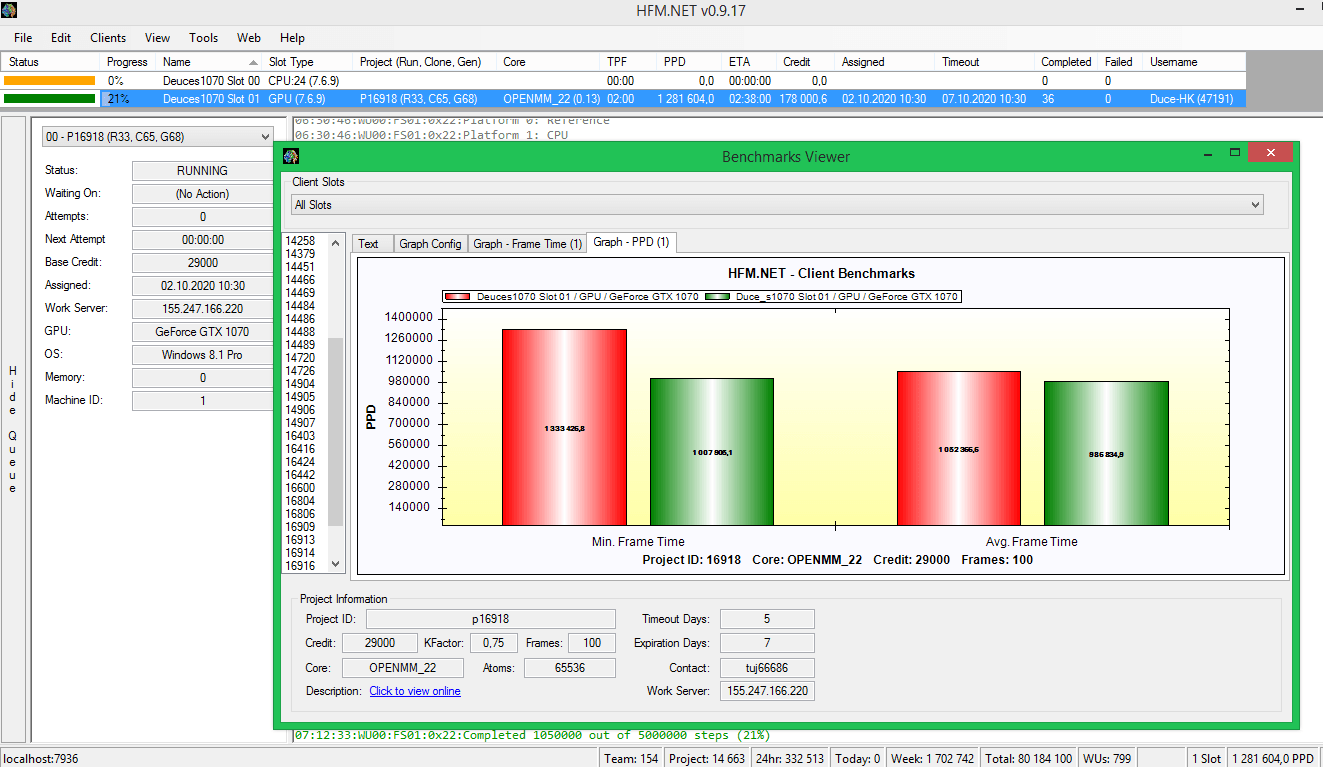 PPD около млн., но, учитывая неполную загрузку ядра ГП в 87%, могло бы быть 1166268,48 (опять же, теоретически)