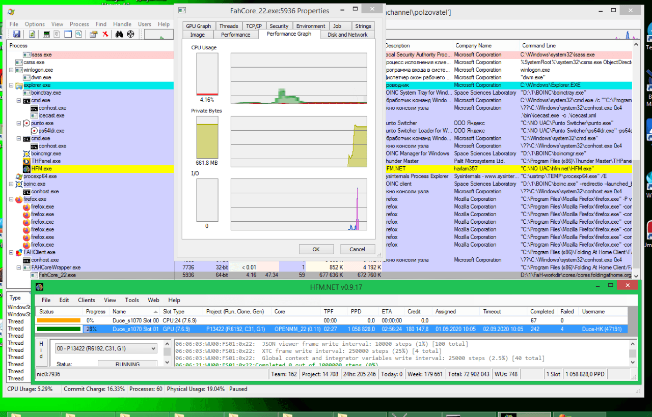 bootvirus Я с даунвольтингом пока морочаюсь и разгоном памяти. На АМД свои особенности и причуды. Время особо нет, комплектующие аж две недели лежали... Выхлоп от проца конечно жалкий: 110к PPD показал при 18 потоках, но зато нет проблем с ловлей заданий. Разгрузка ядер похоже прибавляет порядка 10% скорости видюх. Поправьте если не прав. Пока остановился на 8-потоках чтобы не мешать видюхам.