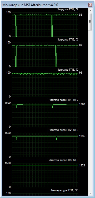 Вот мониторинг, на 1, 2 карте частота имеет скачки вниз, сбрасывает? Что сделать? Попробовал на 2 карте снизить частоту до 1265, скачок не исчезает Пробовал вообще выключать счет на проце, поднятия PPD не заметил, пробовал выключить касперского, результатов изменения PPD не заметил