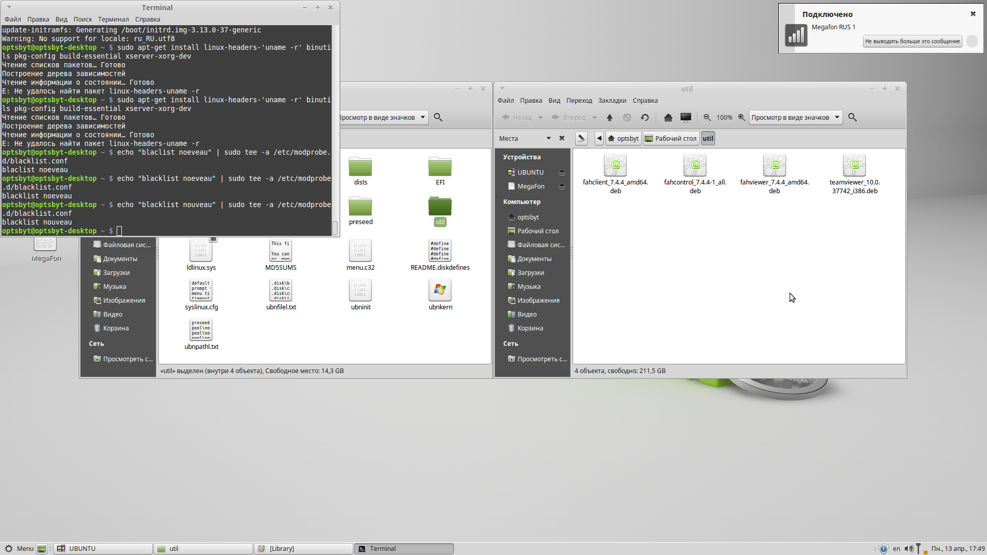Итак, что мне теперь делать дальше, в каком порядке и на что ругается линукс при попытке установить дрова, а также почему не хочет открывать для редактирования блэклист?