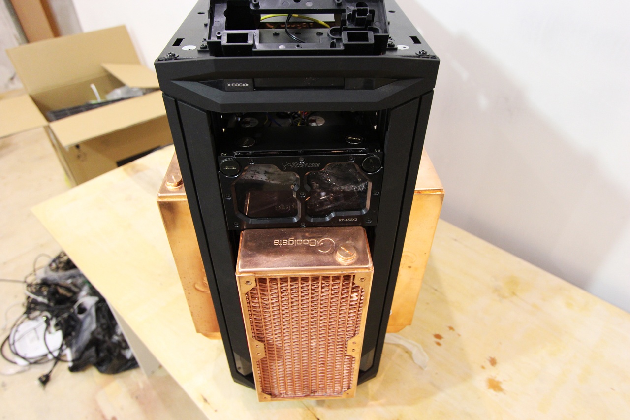Полирнуть медь до блеска, потом бесцветным лаком чтоб закрепить эффект и получше черного будет имхо Корпус Full-Tower. Вообще, корпуса хоть и кажутся большими, но рассчитаны в основном на 2 радиатора максимум. У меня как бы 1 вверху и 1 должен быть внизу справа от бп, но это полный бред с учетом того, сколько проводов справа от бп. Я не знаю, на что ориентируются инженеры корпусов, походу, на 1-2 видеокарты максимум. Так что Full-Tower это если все самому колхозить. А чтобы вот так взять и воткнуть свободно на 3-4 карты систему, это надо мега таверы или как там они называются максимальный класс