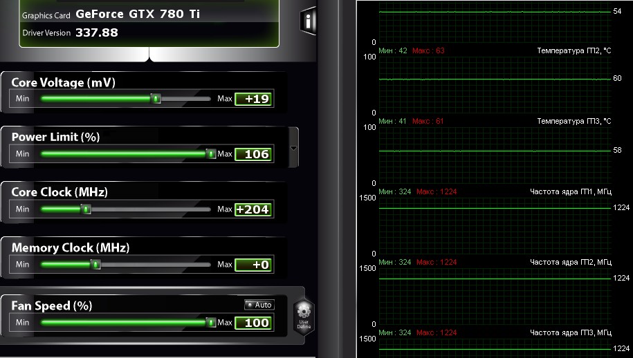 sco01 Да, корпус маловат оказался. Зато вышел очень компактным(если это применимо к фулл таверам:D). Его можно носить по квартире, как чемодан на ручке:) У него сверху ручка приварена хорошо, держит вес и нести удобно Sir_N_Drew Четвертая карта, это еще 25к из кармана:( Да и кто говорит, что нельзя и 4-ю воткнуть, и разогнать?:) Если распродам хлам старый, думаю, воткну 4-ю) Вот сегодня вымучал опытным путем пока такой конфиг частот стабильный... выше даже не пробовал еще, может завтра на 1250 где-нибудь выйти попробую. А по вентилям, да мне из штатов вместе с радиками пришли 6 штук прозрачных на красных светодиодах по 8 баксов за штуку, надо было только все подключить.