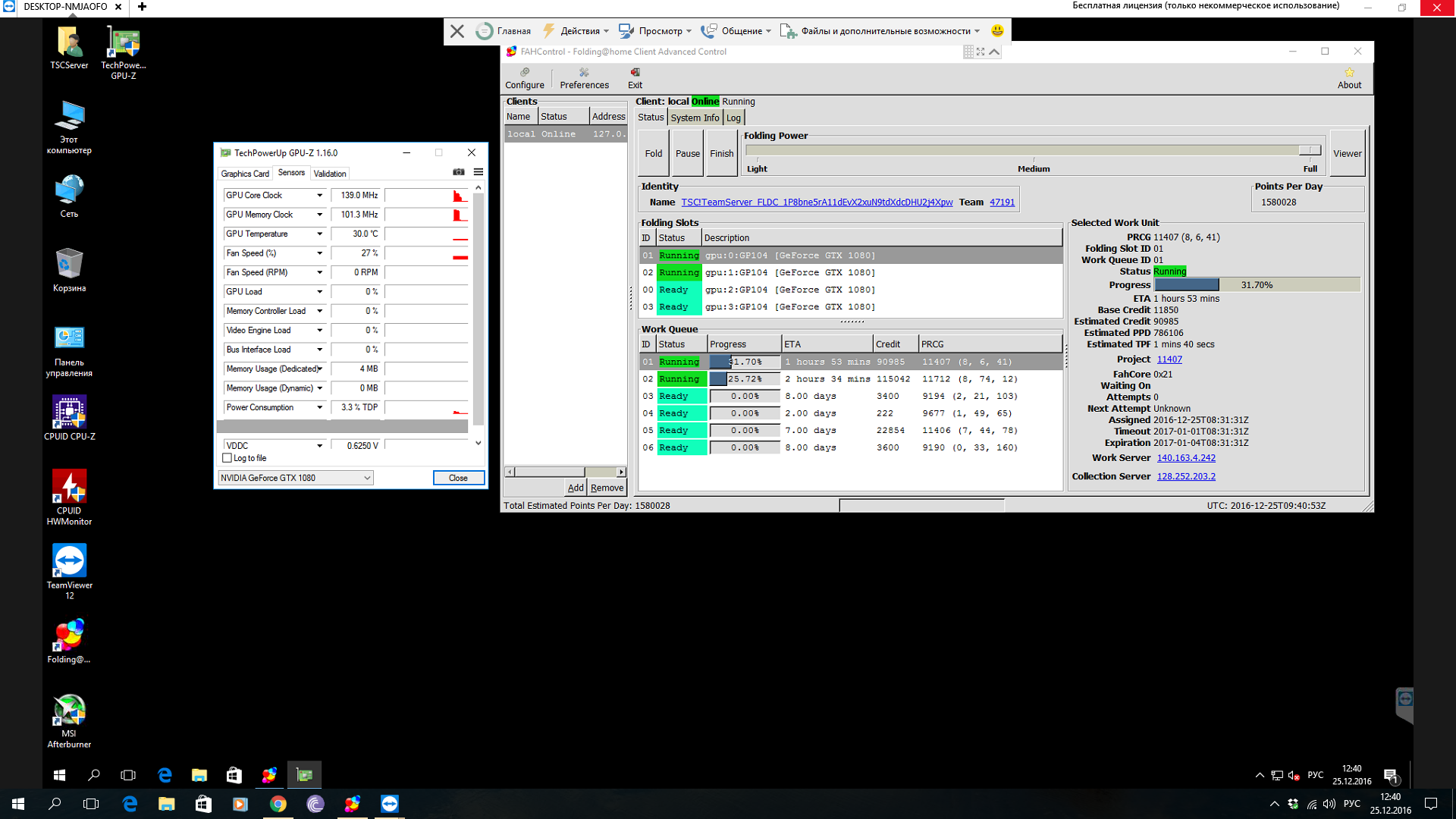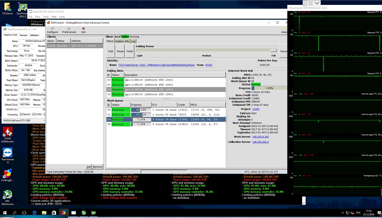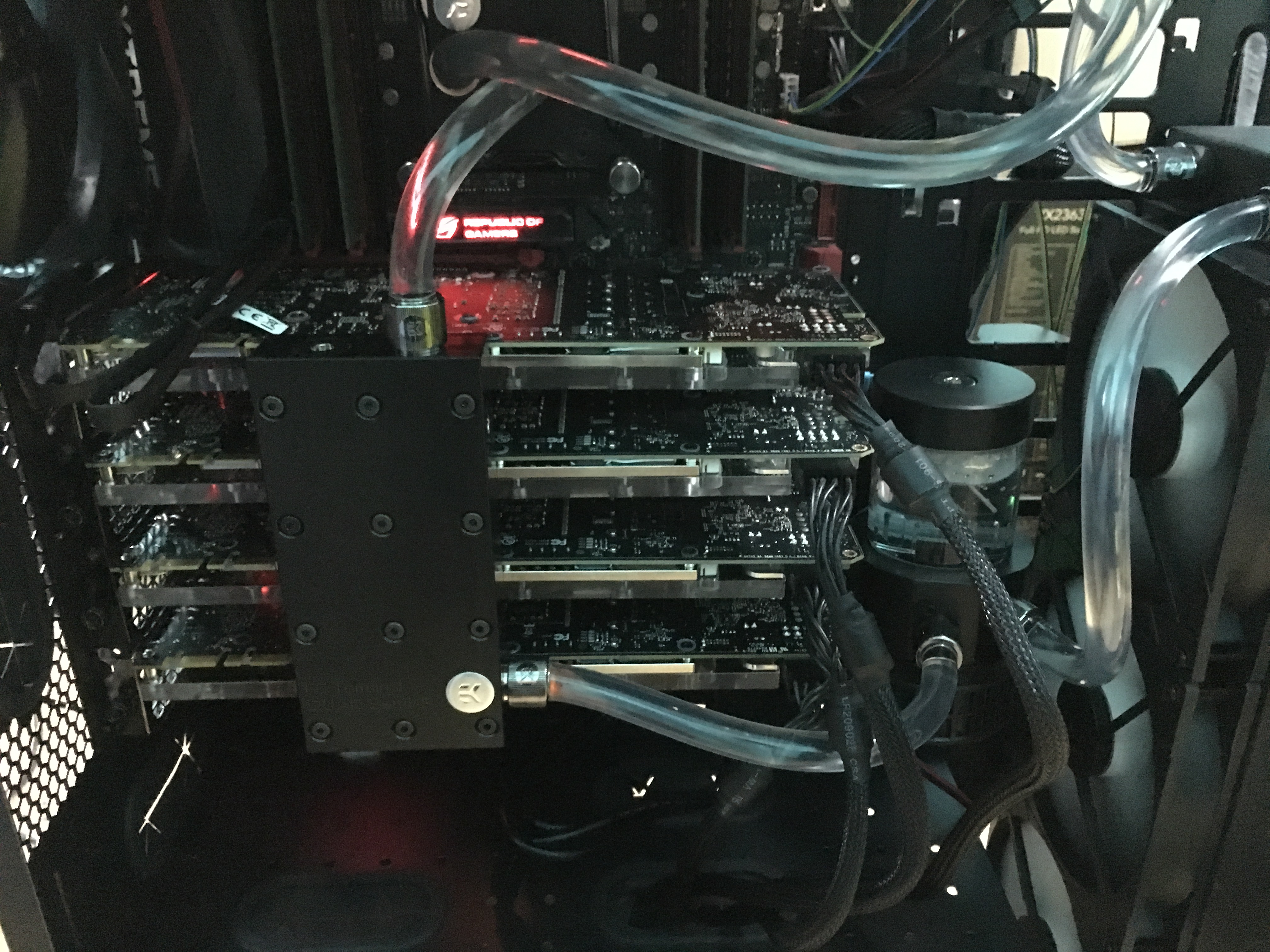 Надо было видео снять, как мы при помощи подручных средств и такой-то матери сначала заправляли водой систему, а потом сливали его. Вот это реально была потеха. Завтра систему буду корячить утром, поэтому освещение будет получше, сделаю фоток. Я решил поставить на систему 10-й виндоус. В линуксе столкнулся с проблемой, что две одинаковые карты в одном кузове не работают. Lecc подсказал мне способ, но я абсолютно не могу найти времени, чтобы его проверить. А у меня будет только одна возможность запустить кранч, чтобы молотило, а по возвращению в конце января уже настраивать все.