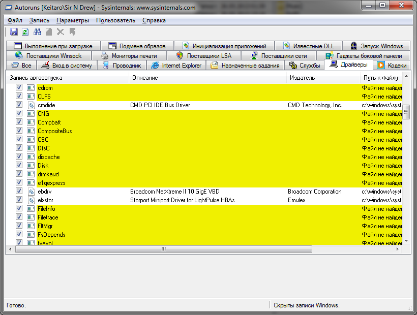 Ещё после чистки реестра в автозапусках много неизвестных файлов появилось (в каждом разделе, особенно много в драйверах)